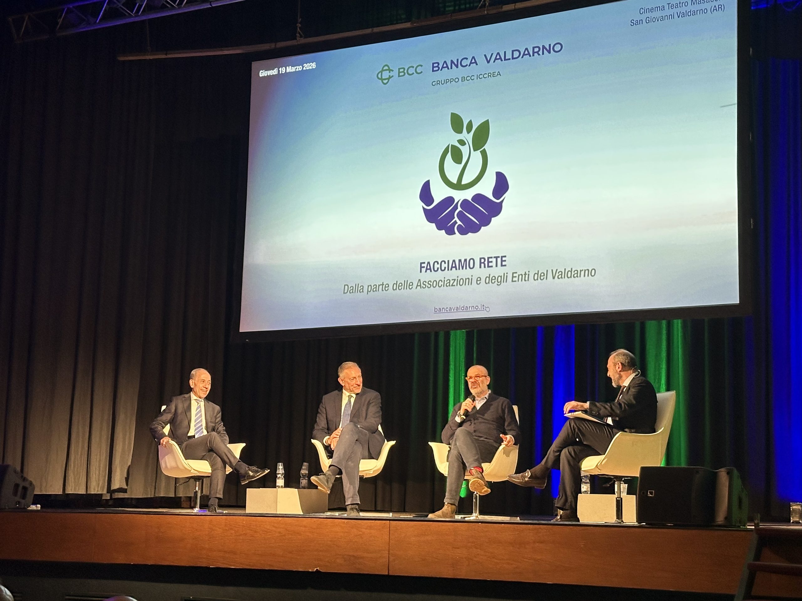 Un evento che ha visto la presenza delle Istituzioni del territorio e i saluti di Valentina Vadi, Sindaco di San Giovanni e presidente della Conferenza dei Sindaci della provincia di Arezzo e Filippo Boni, Assessore regionale a infrastrutture, trasporto pubblico, urbanistica e governo del territorio. Ospite d’eccezione della serata è stato il giornalista, inviato di guerra del quotidiano Avvenire, Nello Scavo che nel corso della serata si è confrontato con Gianfranco Donato e Stefano Roberto Pianigiani, rispettivamente Presidente e Direttore Generale di BCC Banca Valdarno.