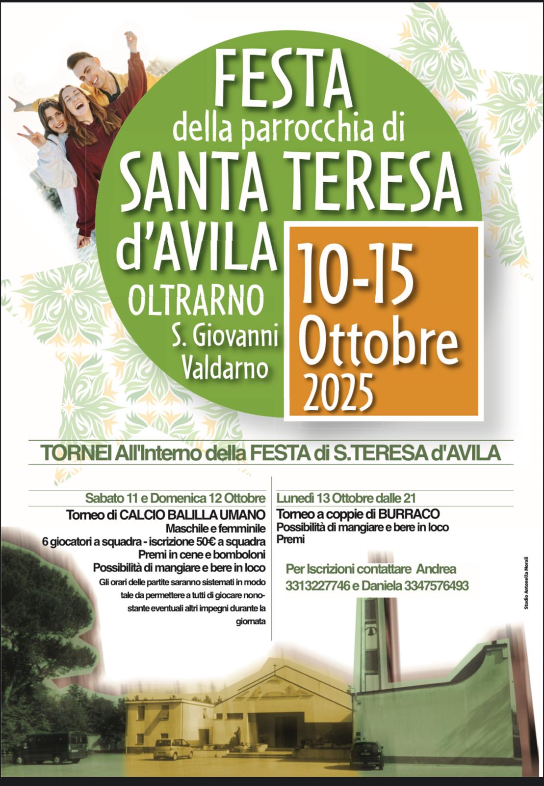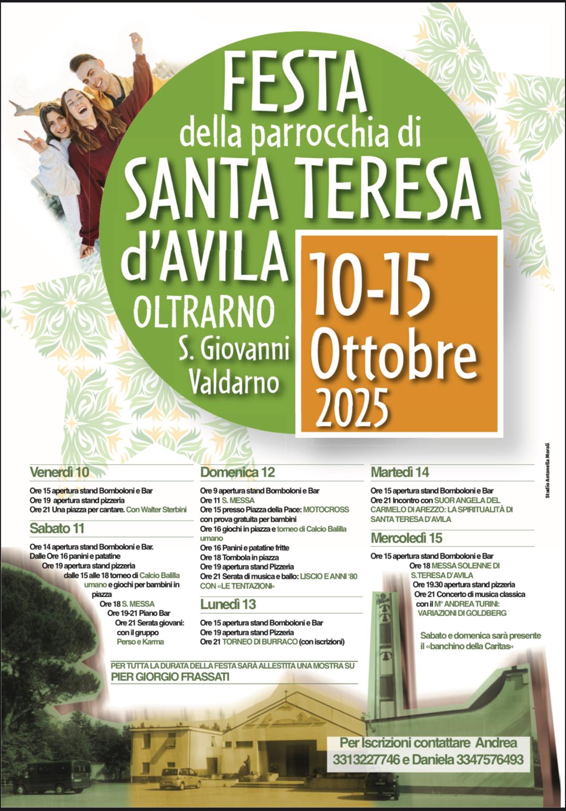 Si terrà a San Giovanni, nel quartiere Oltrarno, dal 10 al 15 ottobre, la Festa di Santa Teresa d’Avila. Una manifestazione collaudata negli anni e che richiama sempre tante persone.