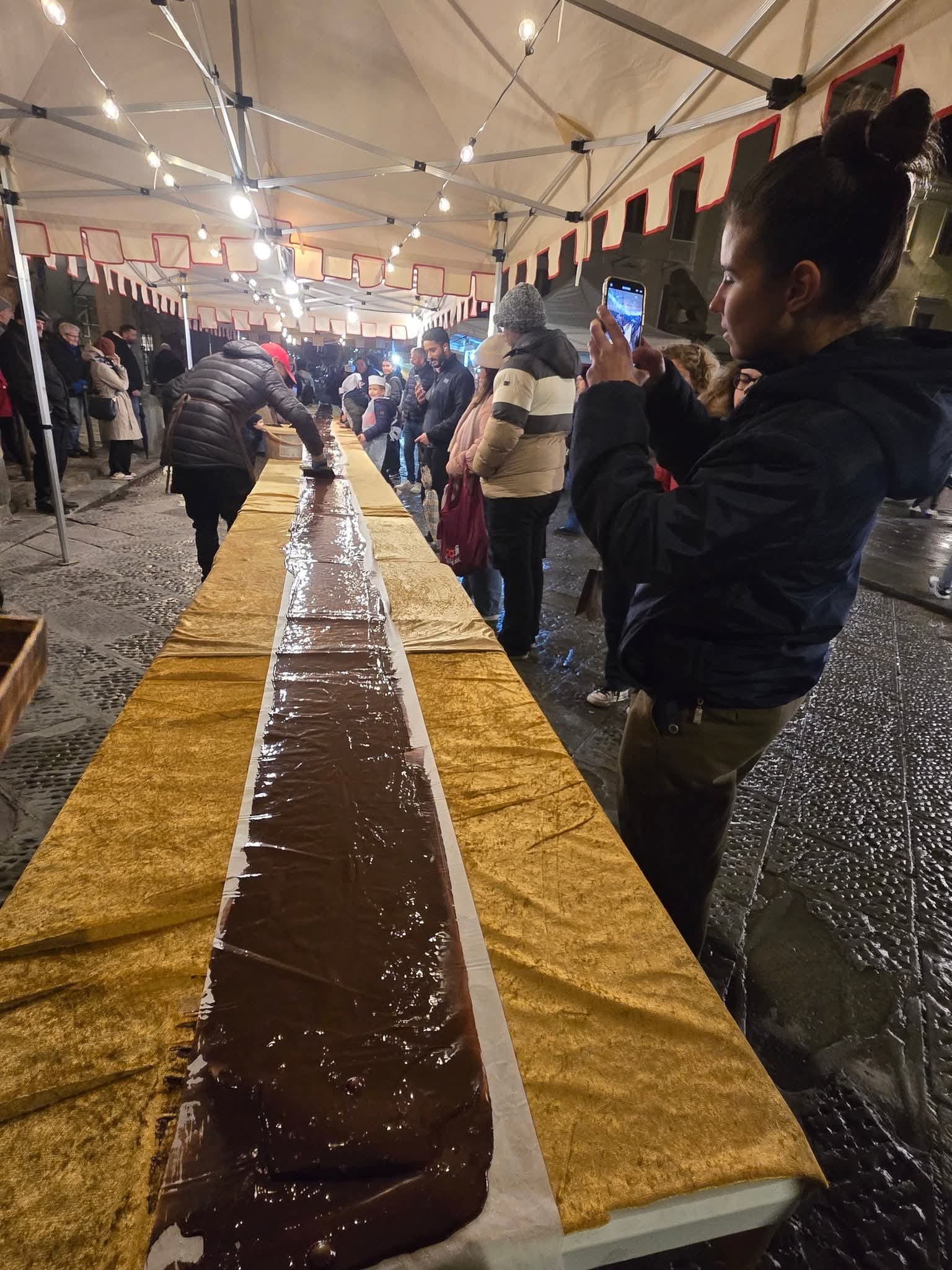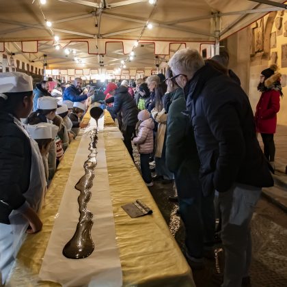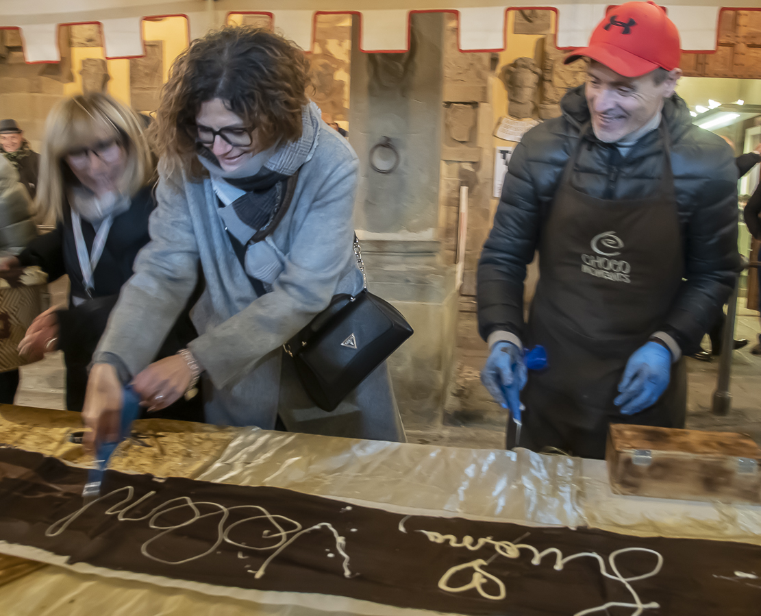 Una lunga striscia di cioccolato e solidarietà lunga oltre 15 metri, in Piazza Cavour a San Giovanni per l’evento ‘Choco Moments’, dedicata al Calcit Valdarno. Sabato scorso la manifestazione dedicata al cioccolato, infatti, ha visto la realizzazione da parte di maestri cioccolatieri di una lunghissima tavoletta di cioccolato da record che ha avuto anche una finalità benefica.