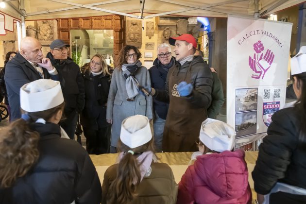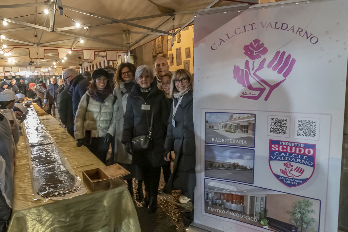 Valentina Vadi, tutti i partecipanti hanno potuto anche gustare la bontà del cioccolato direttamente dalla maxi tavoletta, offrendo una piccola donazione a favore dell’Associazione Calcit Valdarno. Un pomeriggio di dolcezza che ha contribuito così al grande impegno che il Calcit Valdarno ormai da anni con i suoi volontari mette quotidianamente in campo, a cominciare dal Progetto Scudo per l’assistenza domiciliare dei malati oncologici, ma anche il sostegno al Centro Oncologico e alla Radioterapia all’Ospedale del Valdarno.