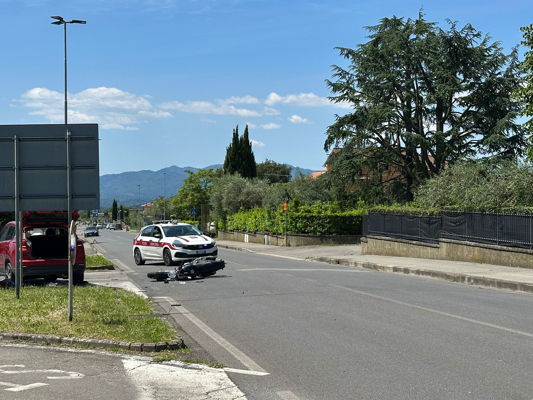 Incidente nella mattina a Loro Ciuffenna, in prossimità dello stadio comunale. Si è trattato dello scontro tra un’auto e una moto. Le cause sono in via di accertamento.