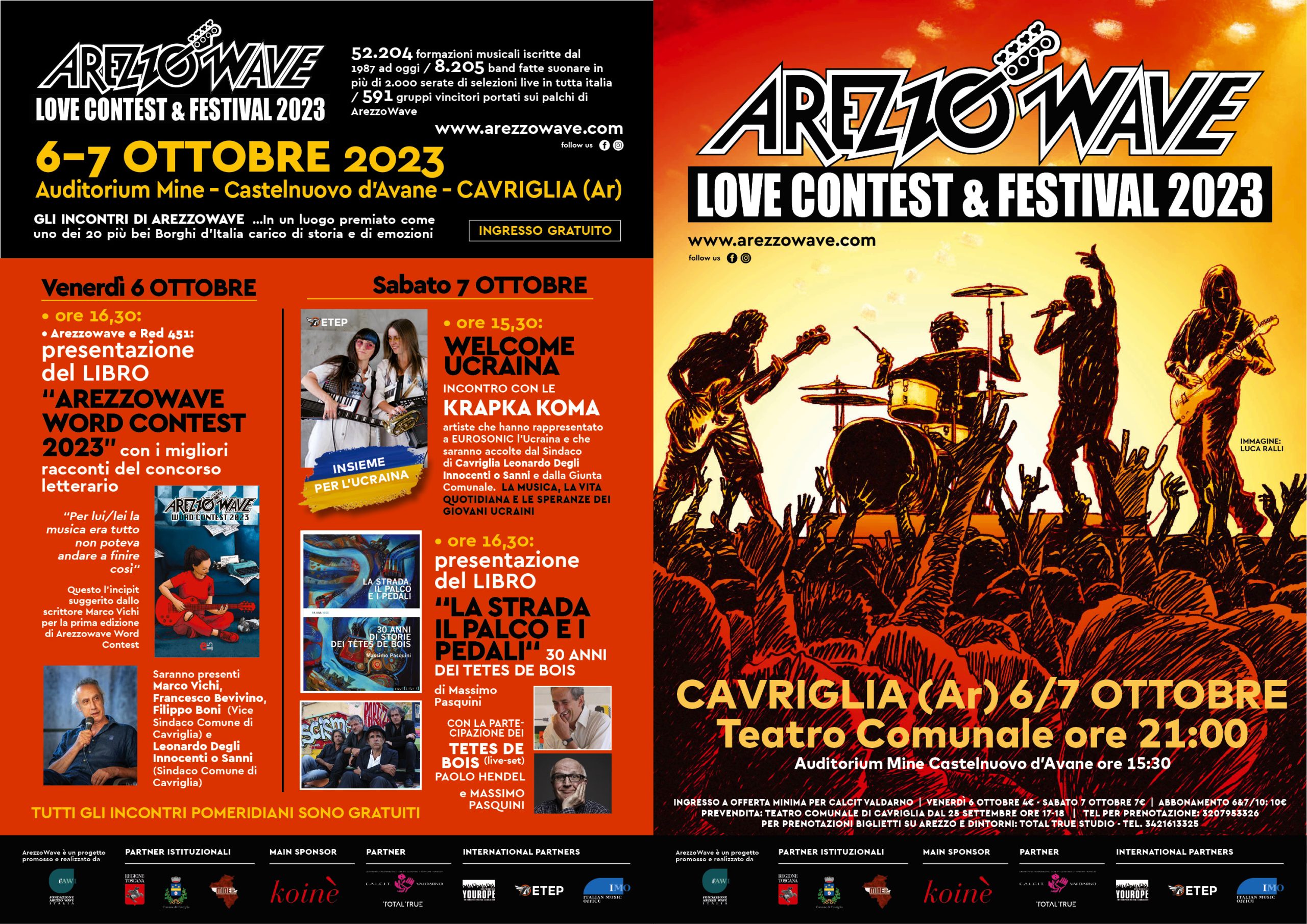 Tutti gli incontri pomeridiani saranno a ingresso gratuito e si terranno presso l’Auditorium Mine di Castelnuovo d’Avane, frazione recentemente riqualificata grazie ai fondi del PNRR. Questa location servirà anche come punto di arrivo e di accoglienza per i circa cento musicisti e artisti che compongono le 12 proposte finaliste di ArezzoWave 2023 provenienti da diverse regioni italiane.