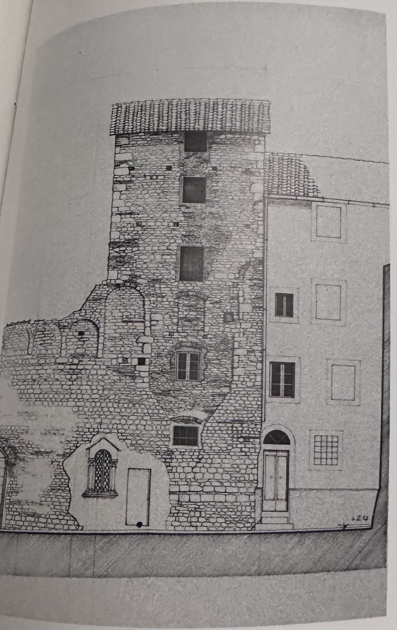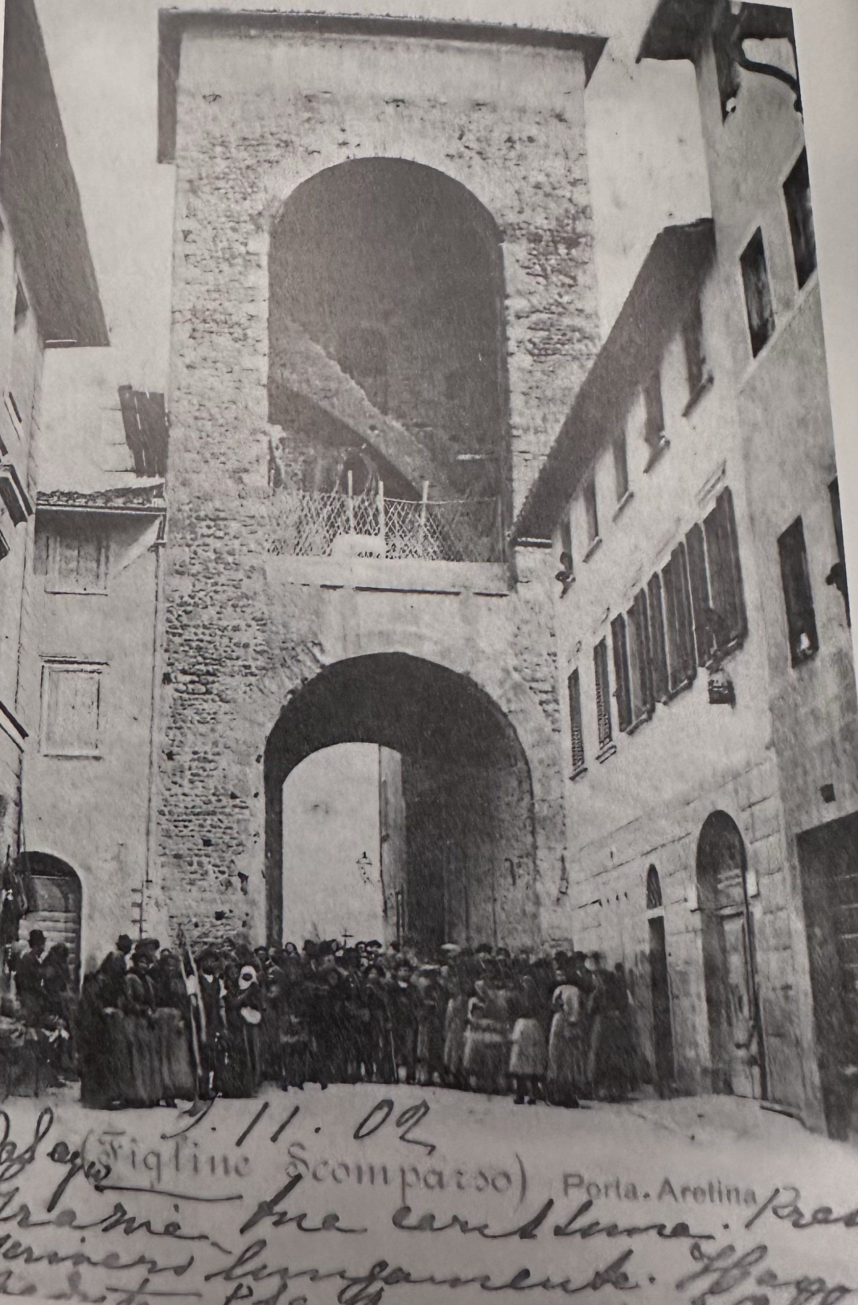Continua Bolis sulla funzione delle mura:” Dalla metà del 1500, le mura cambiano funzione, non servendo più da scudo militare. Così anche l’interesse per la loro manutenzione diminuì. Durante la peste le mura servirono da protezione ma più in un senso di prassi sanitaria. Il perimetro veniva chiuso tramite le porte e si controllava la fuoriuscita della popolazione. Le porte (ne è rimasta solo una, quella di Santa Caterina ed è murata) furono abbattute per diverse praticità: quella fiorentina una per rendere utilizzabile l’area per il mercato del bestiame; quella aretina per il traffico. Molte parti si sono salvate per essere state proprietà dei Serristori; le parti insistenti nelle loro proprietà sono state manutenute. Tutto quello che non insisteva su terreni di proprietà dei Serristori e che è diventato di proprietà demaniale poi passata all’uso comunale, venne messa a reddito dalla comunità vendendo gli appoggi – è il caso che si nota su un Tratto della via Gramsci, un tratto di via Pignotti, la zona di via Sarri e di via Locchi, dove le mura diventavano pareti di abitazioni o simili. La parte più importante e più vasta di proprietà Serristori era quella a sudovest e lì non si nota niente. Poi le mura non hanno più subito restauri completi, ma manutenzioni normali.”
