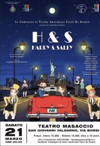 Si conclude a San Giovanni Valdarno il calendario di appuntamenti del “Marzo per le donne”, il programma di iniziative dedicato al mondo femminile che per tutto il mese ha proposto eventi culturali, spettacoli e momenti di riflessione sui temi delle pari opportunità e dei diritti. L’ultimo appuntamento è in programma sabato 21 marzo alle 20,45 presso il Teatro Masaccio, con la commedia “H&S – Harry & Sally”, portata in scena dalla compagnia teatrale amatoriale Facce da Sipario.