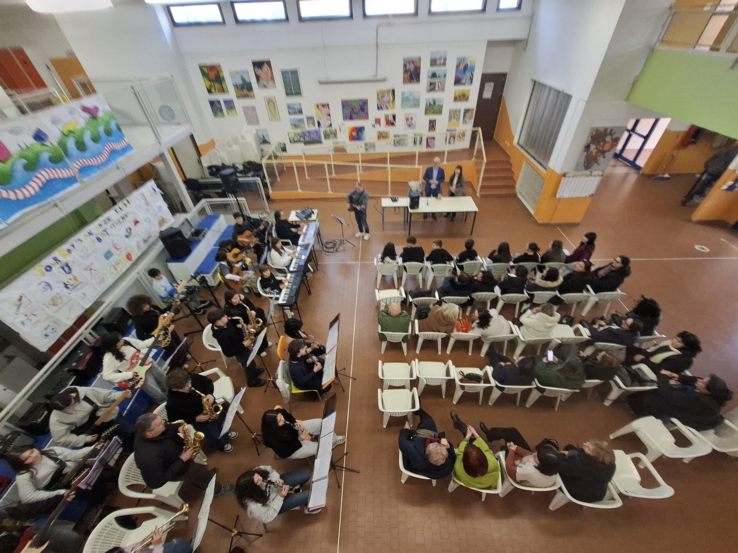 Ad accoglierlo i docenti, i rappresentanti dei vari plessi del Comprensivo, la dirigente scolastica Lucia Maddii, e gli studenti: in particolare, la rappresentanza del nuovo Consiglio dei Ragazzi, con la Rappresentante dell’Istituto che ha preso la parola per un breve saluto al Direttore Tagliaferri; e i ragazzi dell’ensemble musicale, che ha accompagnato la visita con le proprie esecuzioni.