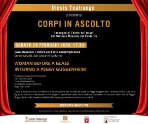 Non una semplice biografia, ma un ritratto in carne e ossa. Sabato 28 febbraio alle 17.30 Casa Masaccio | Centro per l’arte contemporanea apre le sue sale al teatro con “Woman before a glass. Intorno a Peggy Guggenheim”, spettacolo dedicato alla straordinaria figura della collezionista americana che ha segnato in modo indelebile la storia dell’arte del Novecento.