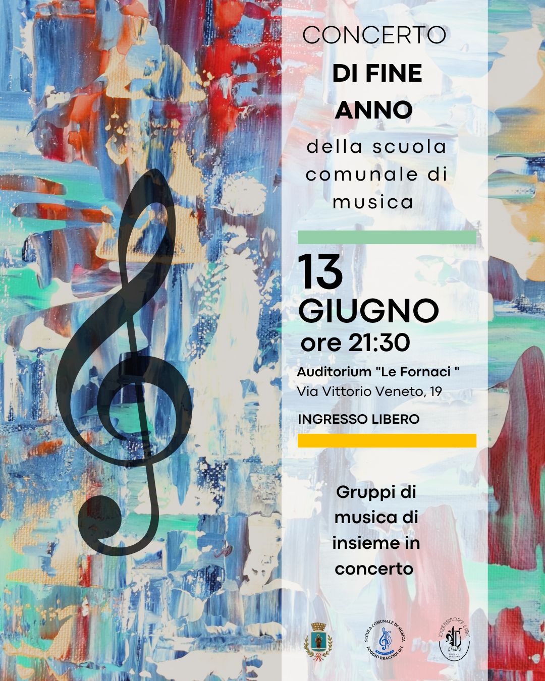 Si terrà venerdì 13 giugno dalle 21:30 presso l’auditorium Le Fornaci di Terranuova il concerto di fine anno della scuola comunale di musica Poggio Bracciolini.