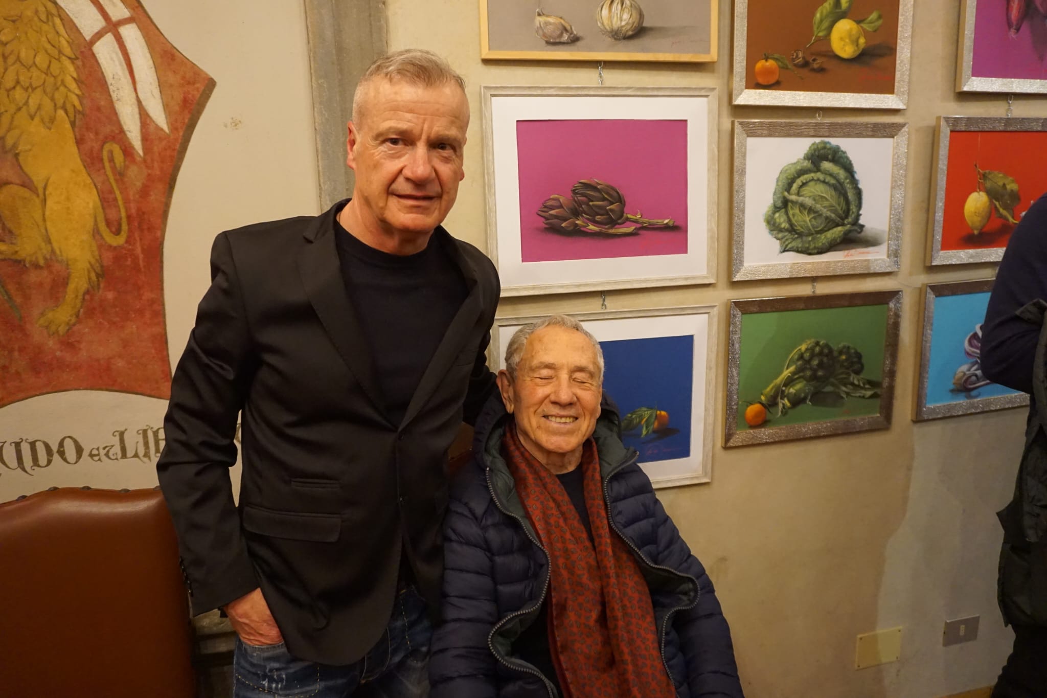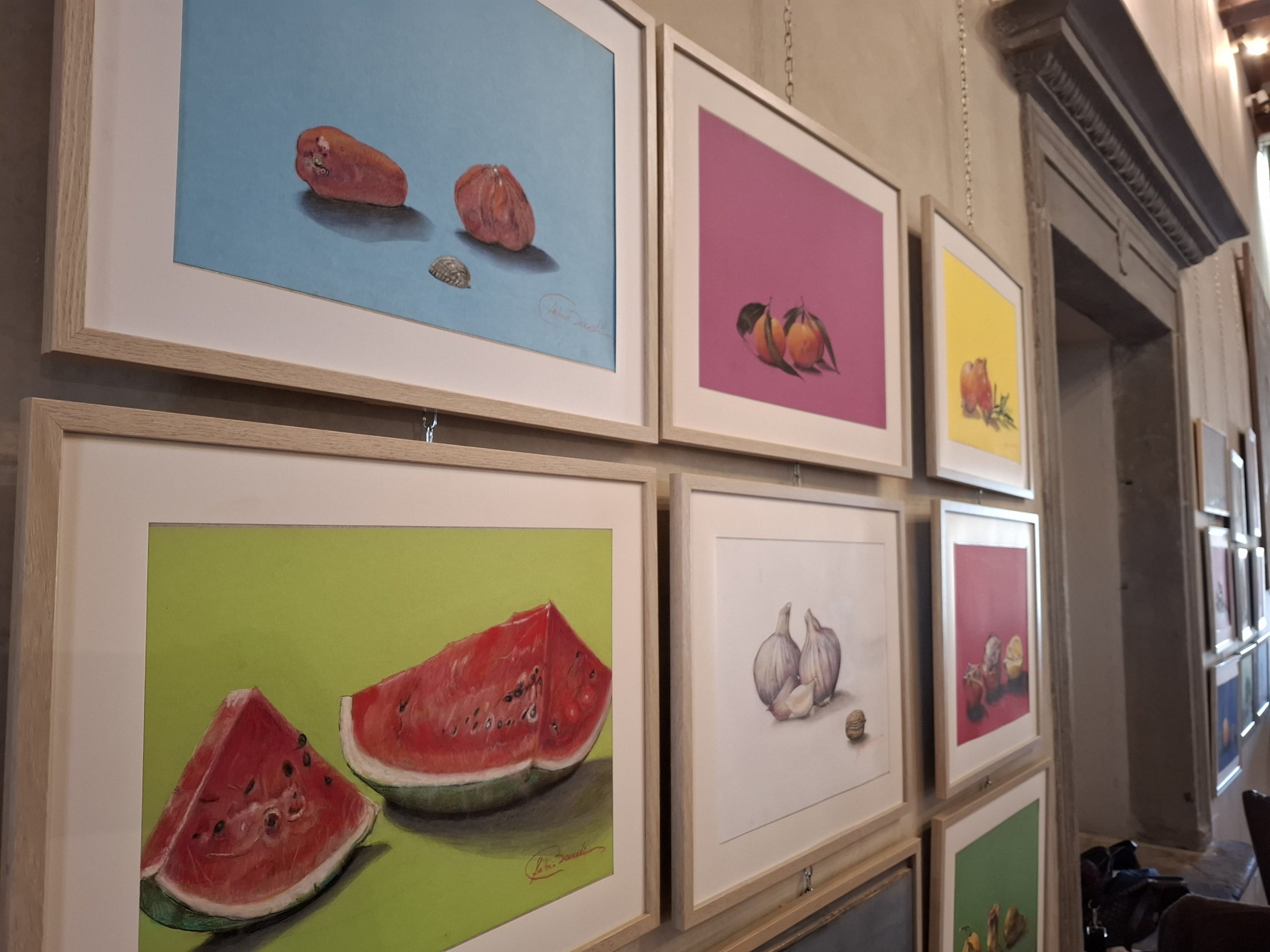 “Utilizzo come soggetti – continua Bondi – la frutta, la verdura perché cerco anche di nobilitare cose che nella vita normale hanno un ruolo marginale. C’è uno studio molto intenso anche a livello di disegno per quanto riguarda i volti: ho finito da po’ un quadro che ho donato all’Oratorio di Ponticelli che rappresenta i patroni a cui è intitolato, e qui nella mostra ho portato gli studi sui volti che ho fatto per trasferirli proprio nel quadro. Uso le tecniche che ho imparato a bottega dal pittore Massimo Callossi, che ha fatto della ricerca dell’utilizzo dei materiali che utilizzavano i pittori rinascimentali il suo fare nella pittura. Grazie a lui sono riuscito a fare tesoro di questi insegnamenti e trasferisco queste conoscenze in quelle cose che faccio”.