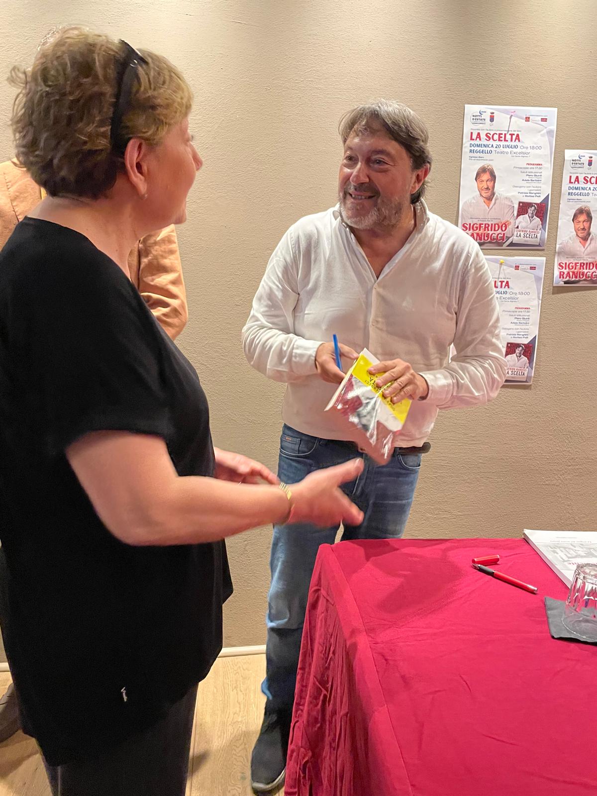 Grande successo a Reggello per la serata con Sigfrido Ranucci, autore e conduttore di Report su Rai3, che ieri domenica 20 luglio ha presentato al Teatro Excelsior il suo libro “La scelta”. Un evento che ha registrato il tutto esaurito, con tante persone presenti sia al firmacopie, sia per assistere alla presentazione, un dialogo condotto dai giornalisti Patrizia Menghini e Matteo Pelli.