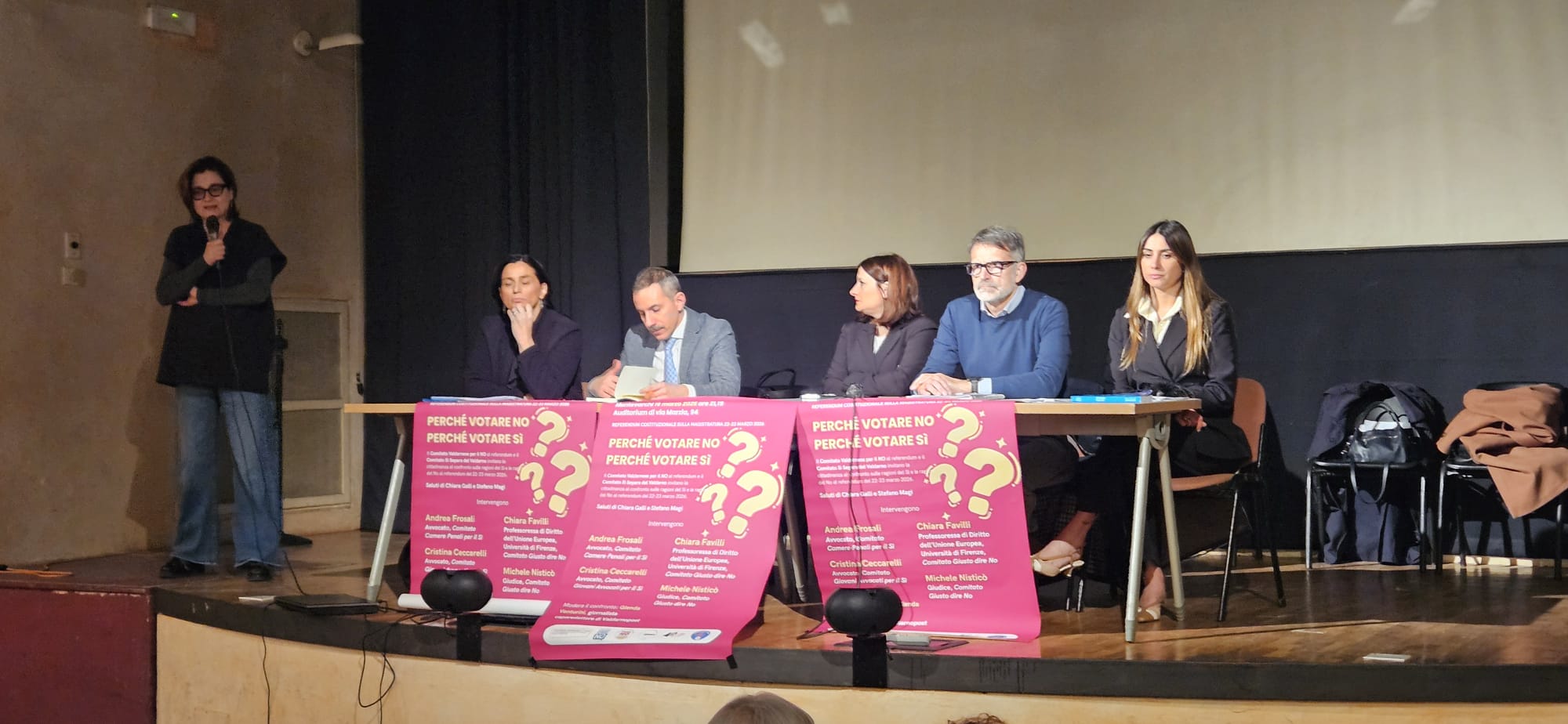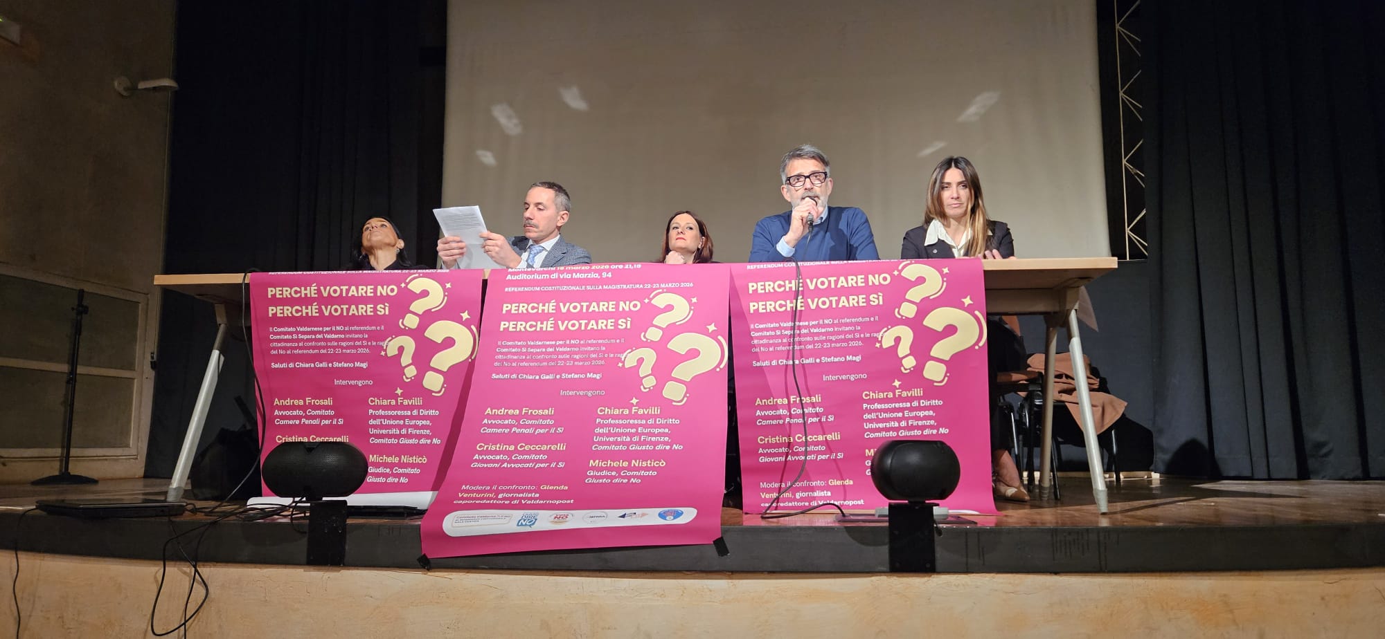 Per la prima volta in Valdarno, insomma, si sono seduti allo stesso tavolo i sostenitori del Sì alla riforma costituzionale e quelli del No. Protagonisti della serata, che ha offerto un dibattito vivace, approfondito e di grande interesse, Cristina Ceccarelli, avvocato del Comitato Giovani Avvocati per il Sì; Andrea Frosali, avvocato e rappresentante del Comitato Camere Penali per il Sì; Michele Nisticò, giudice e membro del Comitato Giusto dire No; Chiara Favilli, professoressa di Diritto dell’Unione Europea all’Università di Firenze e membro del Comitato Giusto dire No.