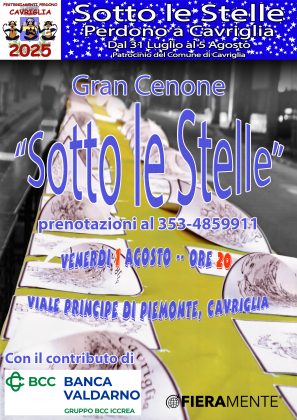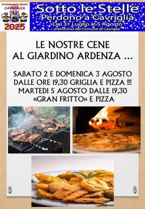 Le Feste del Perdono rappresentano un momento importante per tutta la comunità, un’occasione per ritrovarsi e condividere serate all’insegna della convivialità. Venerdì 1° agosto è prevista la cena sotto le stelle in Viale Principe di Piemonte, mentre ogni sera sarà attivo lo stand gastronomico presso il Giardino Ardenza.