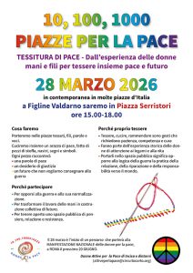Un pomeriggio di partecipazione, relazione e impegno civile. Sabato 28 marzo Figline Valdarno ospiterà in Piazza Serristori, dalle ore 15 alle 18, l’iniziativa “Tessitura di pace”, aperta alla cittadinanza.