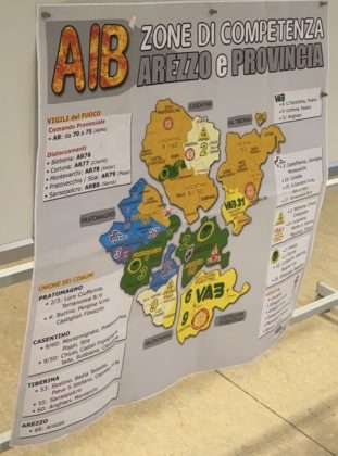 Oltre alle attività di coordinamento in sala, la provincia di Arezzo può contare su quattro torri vedetta per il monitoraggio e sulla base elicottero di Villa Cognola, nel comune di Castiglion Fibocchi, per gli interventi dall’alto.