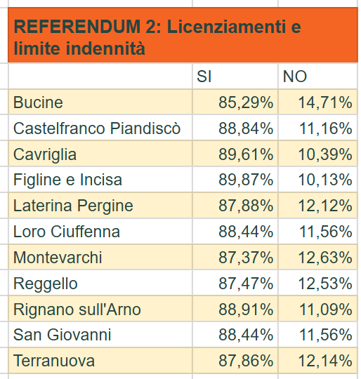 Ecco dunque come si sono espressi gli elettori valdarnesi (ricordiamo comunque che il quorum non è stato raggiunto).