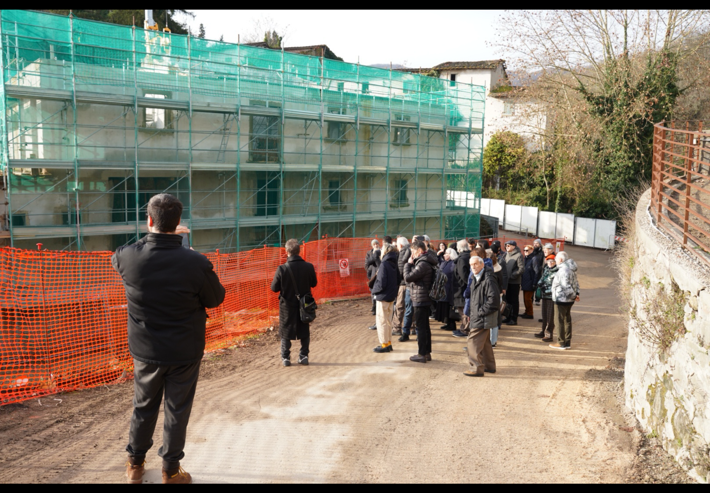 La mattinata si è aperta alle ore 9.30 con un sopralluogo guidato insieme ai cittadini. Un’occasione preziosa per osservare da vicino gli interventi già realizzati e quelli attualmente in corso nei diversi lotti del progetto, entrando fisicamente dentro un cantiere che sta progressivamente restituendo forma e vita a quello che per decenni è stato un paese abbandonato.