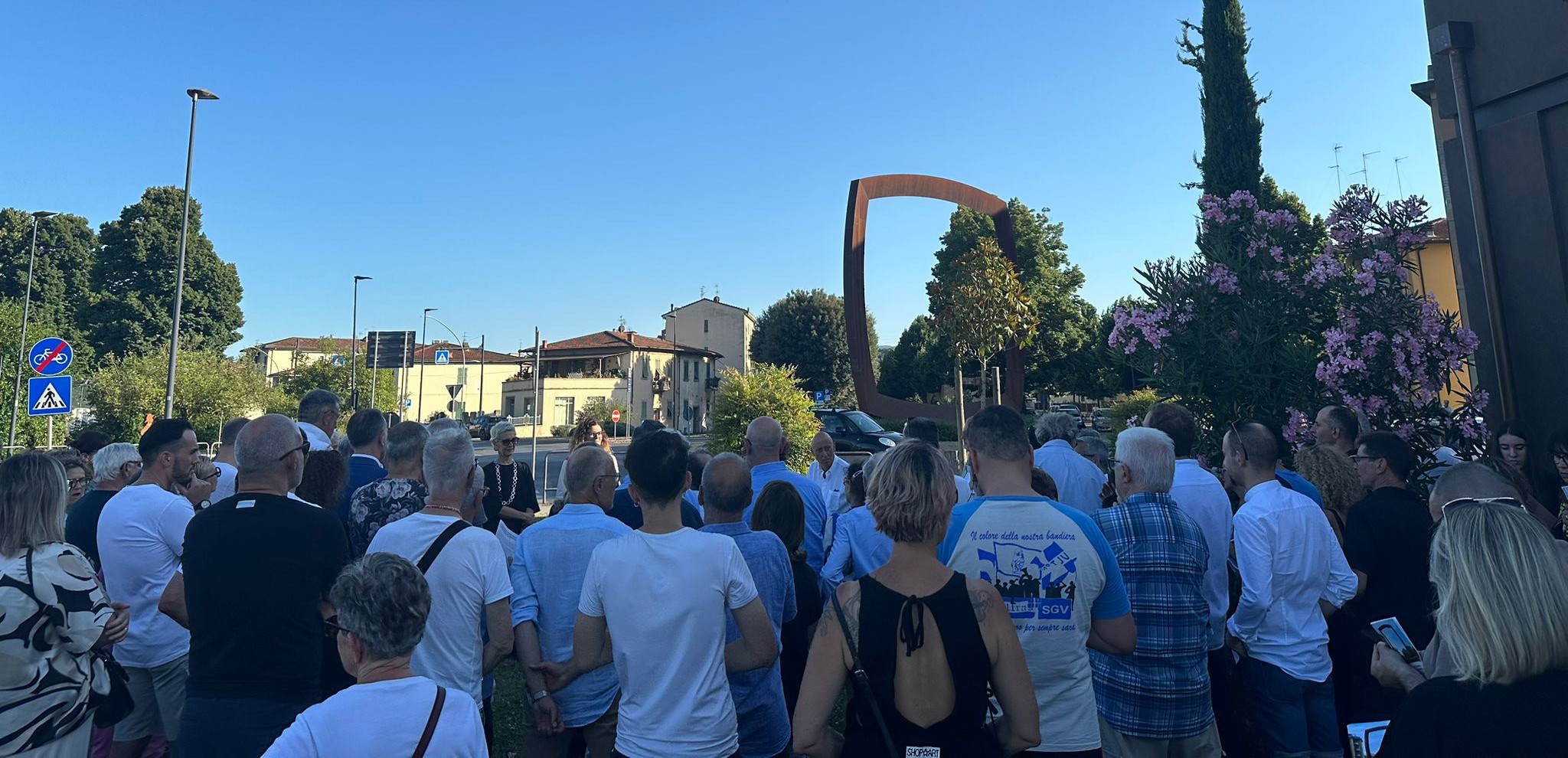 Presentazione ufficiale a San Giovanni per il “Cerchio imperfetto” di Mauro Staccioli, l’opera installata da qualche giorno nella rotatoria tra il ponte Ipazia d’Alessandria e il Lungarno Don Minzoni. Presenti il sindaco Valentina Vadi e l’assessore alla cultura Fabio Franchi, insieme a Giulia Staccioli, figlia dell’artista e presidente dell’Archivio Mauro Staccioli, Andrea Alibrandi, direttore dello stesso Archivio, Caterina Martinelli, direttrice del Mauro Staccioli Museo Archivio di Volterra, e Dario Cecchini, promotore e sostenitore dell’iniziativa. Tanti i cittadini intervenuti.