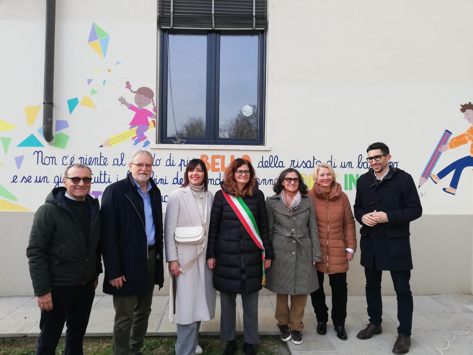 l’assessore regionale ai lavori pubblici Filippo Boni, il dirigente scolastico Francesco Dallai, gli assessori comunali Laura Ermini e Alberto Marziali e Renata Nagy e Rosanna Scibilia di Ritocchi di classe. Insieme a loro i piccoli studenti e studentesse, docenti e genitori.