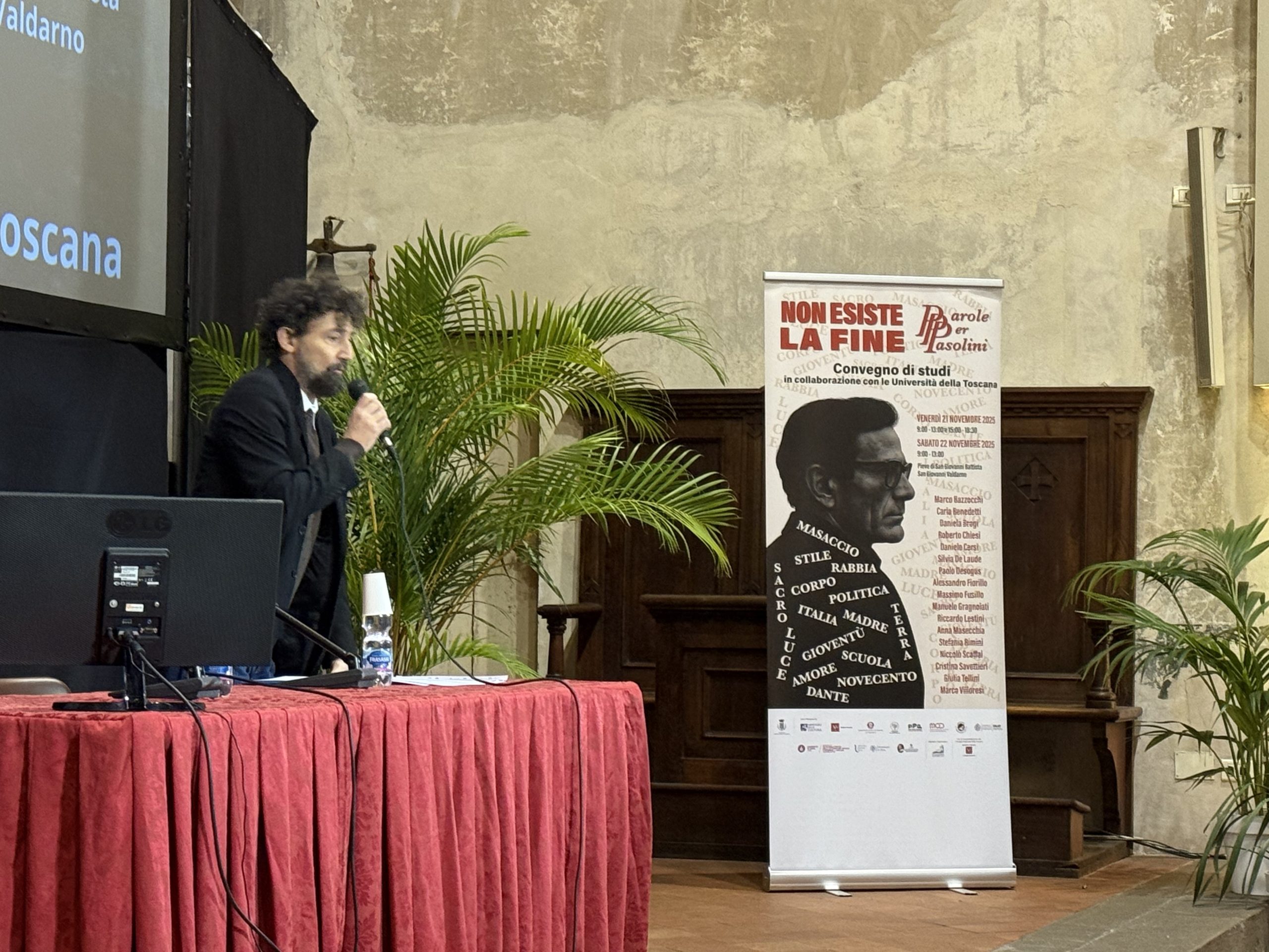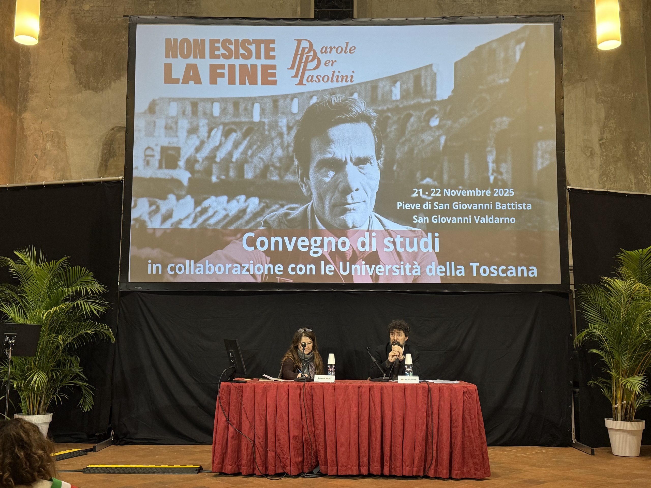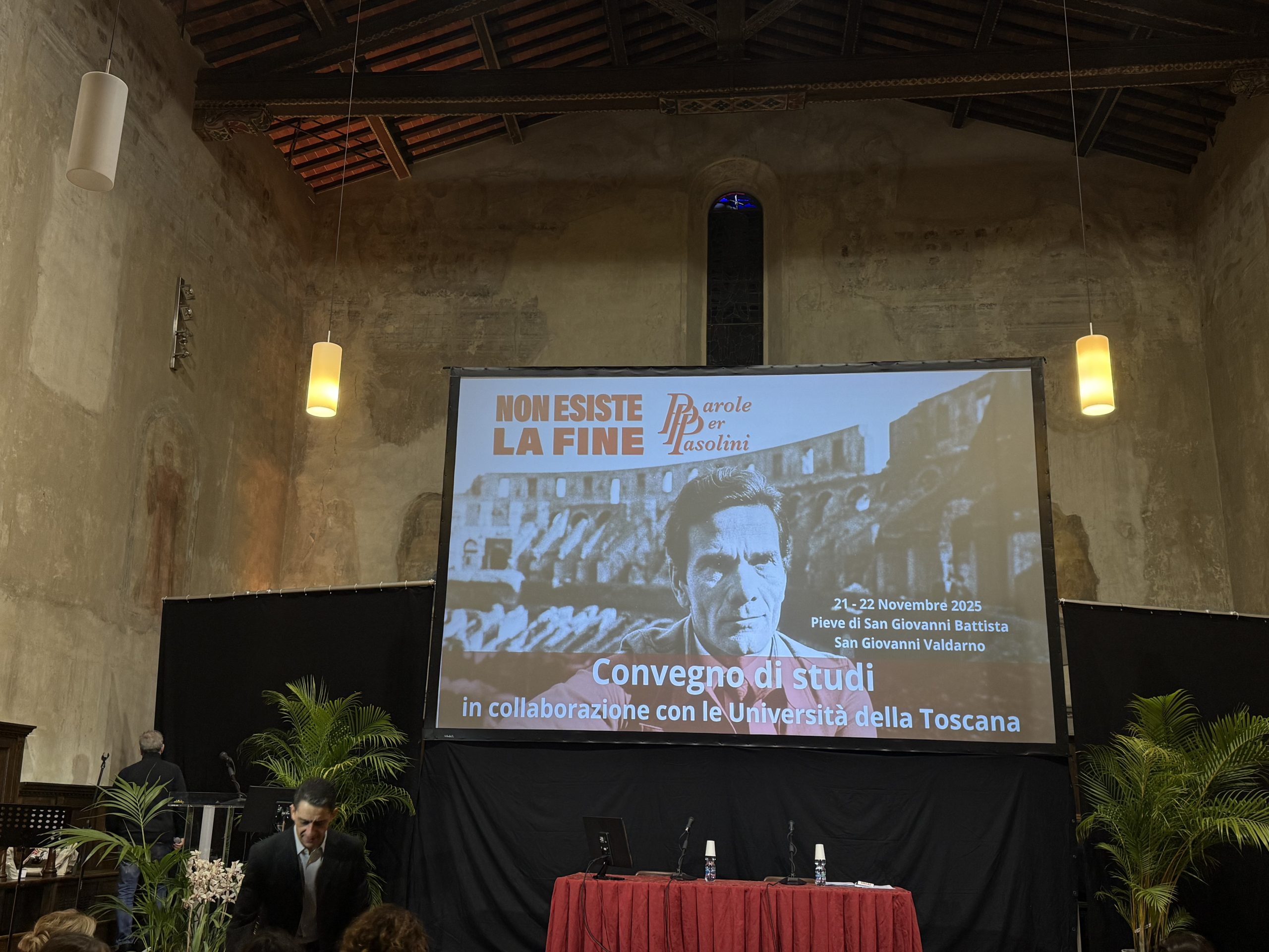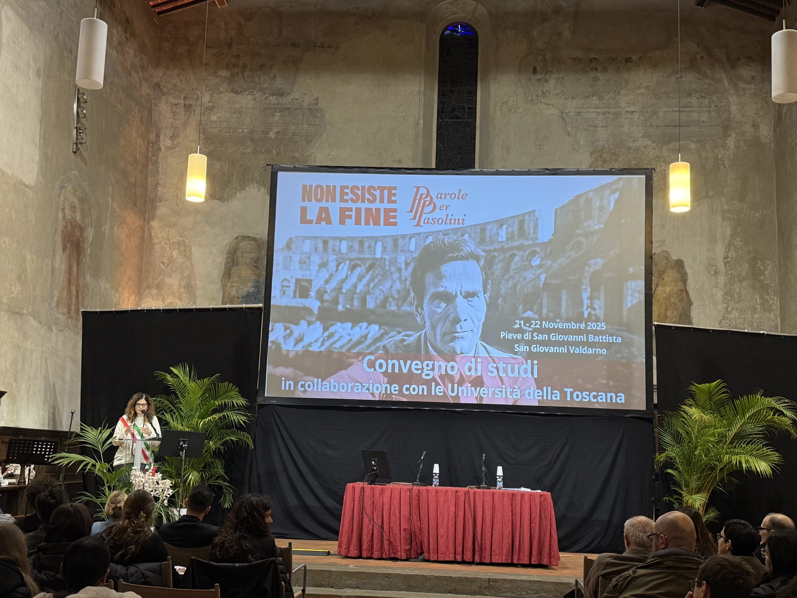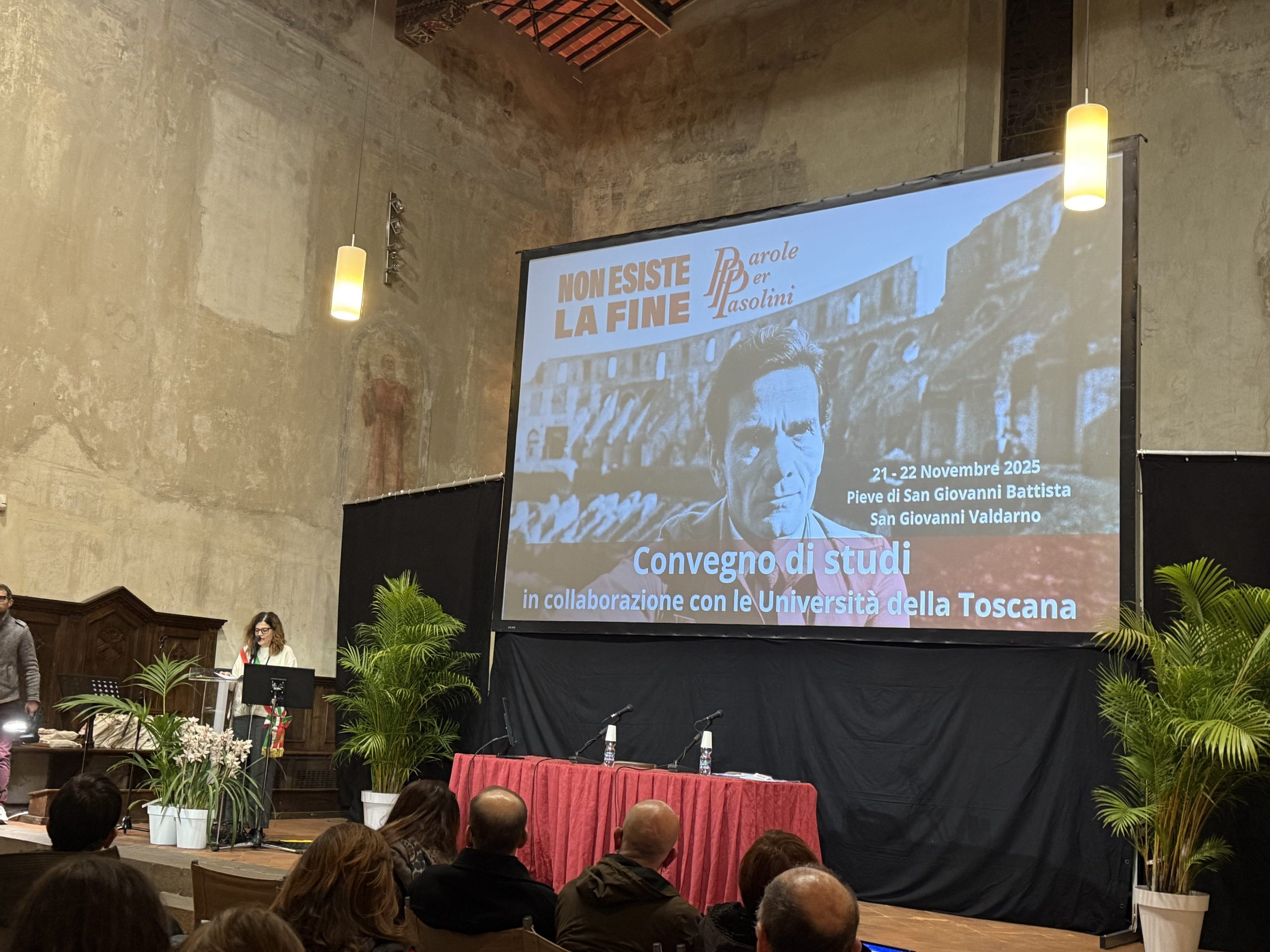 San Giovanni Valdarno ha aperto oggi, con una mattinata densa di emozioni e riflessioni, il convegno di studi “Non esiste la fine. PPP – Parole per Pasolini”, appuntamento che chiude il mese di celebrazioni dedicate a Pier Paolo Pasolini nel cinquantesimo anniversario della sua scomparsa. La Pieve di San Giovanni Battista, cuore storico della città, si è trasformata in un luogo di dialogo e scoperta, accogliendo studiosi italiani e internazionali, studenti, docenti e appassionati, tutti uniti dall’urgenza di confrontarsi con l’opera e il pensiero di uno degli intellettuali più complessi del Novecento.