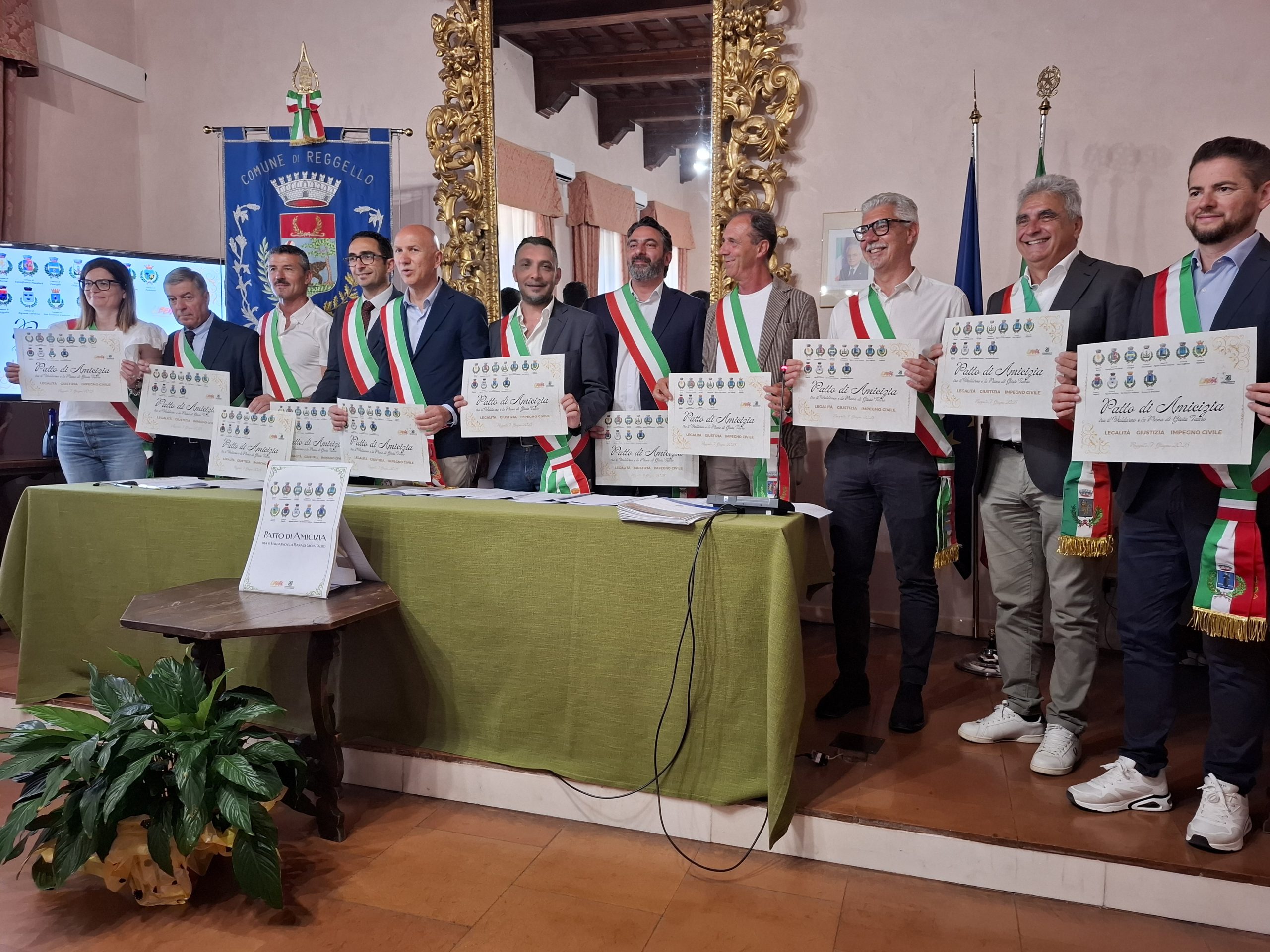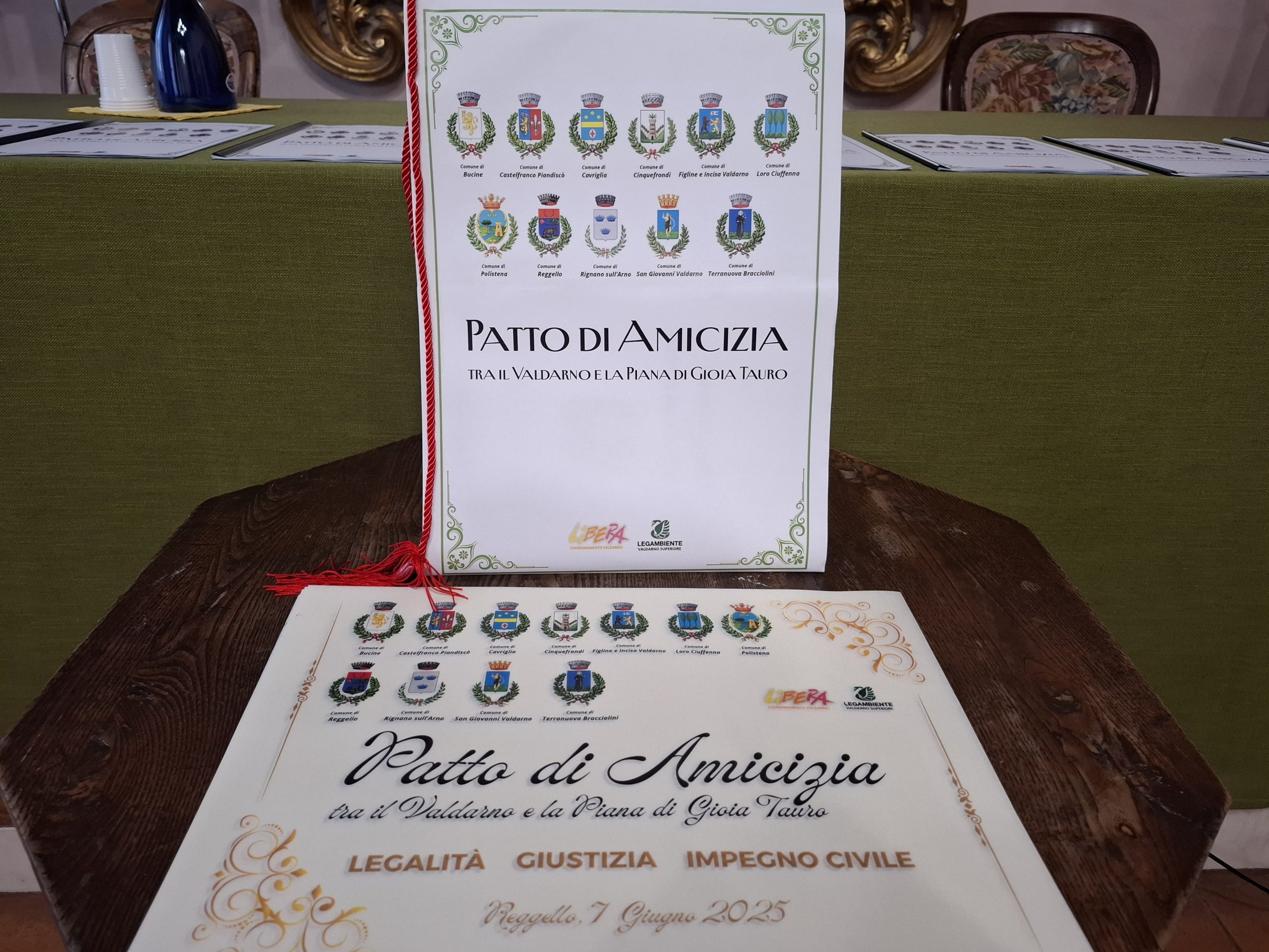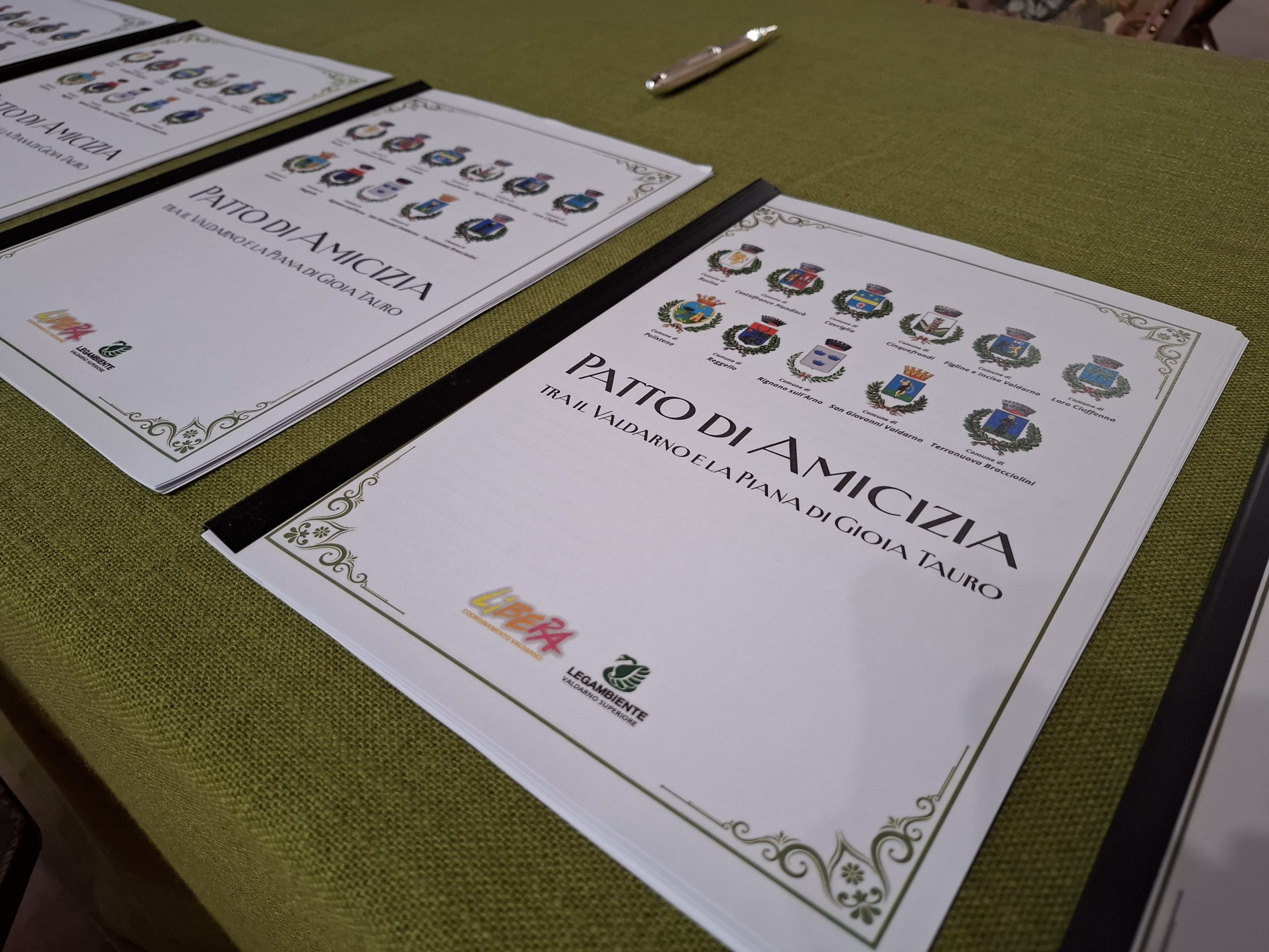 Siglato oggi a Reggello dai sindaci e gli amministratori di undici comuni il Patto d’Amicizia che quindi da oggi lega il Valdarno alla Piana di Gioia Tauro. È il frutto di un percorso e un dialogo avviati da alcuni anni, grazie all’impegno dei comuni ma anche del Coordinamento di Libera e dal Circolo di Legambiente del Valdarno, che si sono recati nella Piana di Gioia Tauro, per approfondire la conoscenza del fenomeno della ‘ndrangheta nel suo territorio d’origine, anche per acquisire elementi che permettano di riconoscere il fenomeno ‘ndranghetista quando si presenta nei territori toscani, e studiare strumenti e strategie che consentano di prevenirlo.