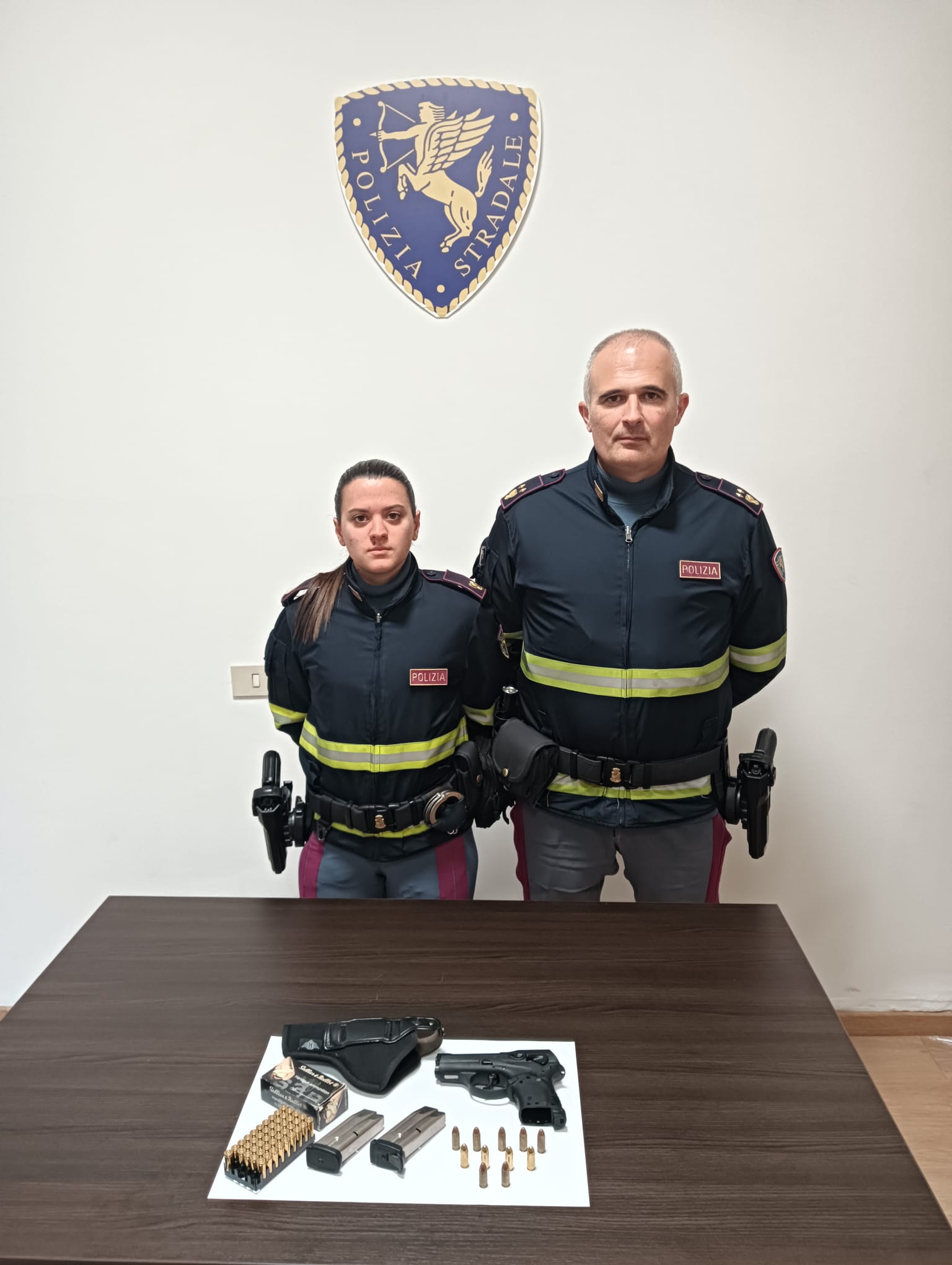 L’intervento ha avuto luogo all’altezza del comune di Laterina e Pergine Valdarno. Una pattuglia della Sottosezione Polizia Stradale di Arezzo-Battifolle, impegnata nel controllo del territorio, ha fermato una vettura proveniente da Milano guidata da un uomo residente nella provincia di Arezzo che ha manifestato un nervosismo sproporzionato, inducendo gli operatori ad approfondire il controllo. Sotto il sedile posteriore è stata così trovata una pistola semiautomatica Beretta 9000 S calibro 9×21, con matricola abrasa (resa illeggibile) e completa di caricatore inserito. Oltre all’arma, sono stati sequestrati un secondo caricatore e oltre 50 proiettili dello stesso calibro, in parte sfusi e in parte contenuti in una scatola, nascosti nell’abitacolo.