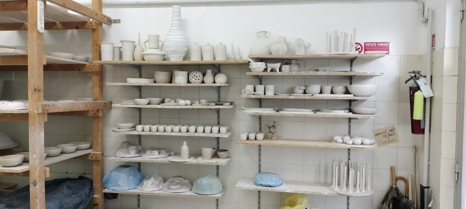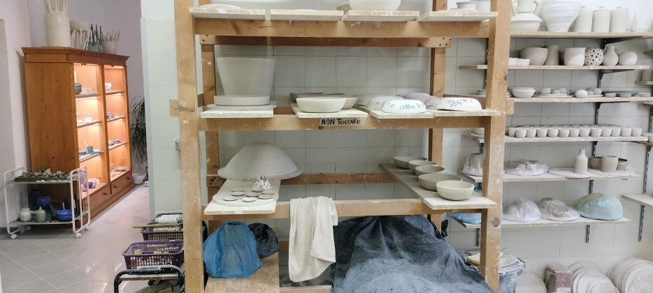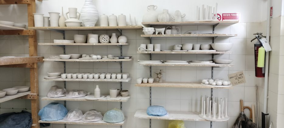 La creazione della ceramica artigianale è un processo con vari step (ci viene data una dimostrazione nei video sotto questo paragrafo), secondo Silvia quello più interessante è quello della rifinitura, che avviene dopo che la forma dell’oggetto si è asciugata e solidificata: “La rifinitura è la parte più interessante, perché è lì che tu puoi intervenire e dare al pezzo il carattere che desideri: applichi delle cose, graffisci, intagli e manipoli.”