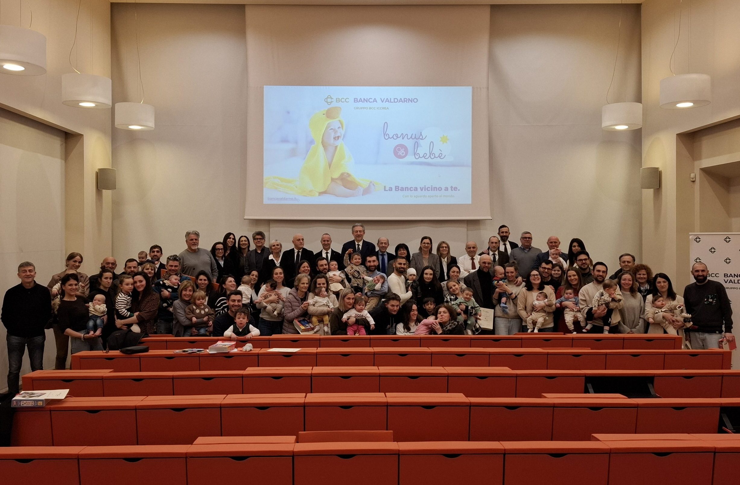 Trentuno bimbi, figli di soci di Banca Valdarno e nati nel 2025, hanno ricevuto mercoledì 4 marzo presso l’Auditorium della Banca a San Giovanni il Bonus bebè, consegnato dal Presidente Gianfranco Donato e dal Direttore Generale Stefano Roberto Pianigiani.