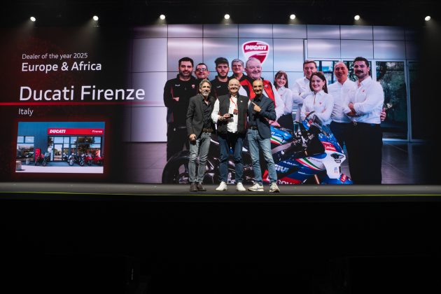 Il premio è stato consegnato dal CEO di Ducati Motor Holding, Claudio Domenicali, e da Francesco Milicia, V.P. di Ducati Motor Holding, che hanno voluto premiare l’eccellenza, la passione e la professionalità con cui il team fiorentino rappresenta il marchio nel panorama internazionale.