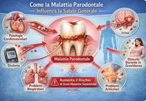 Come la malattia parodontale influenza la salute generale? Oggi sono riconosciute dalla comunità scientifica importanti correlazioni con molte patologie sistemiche: