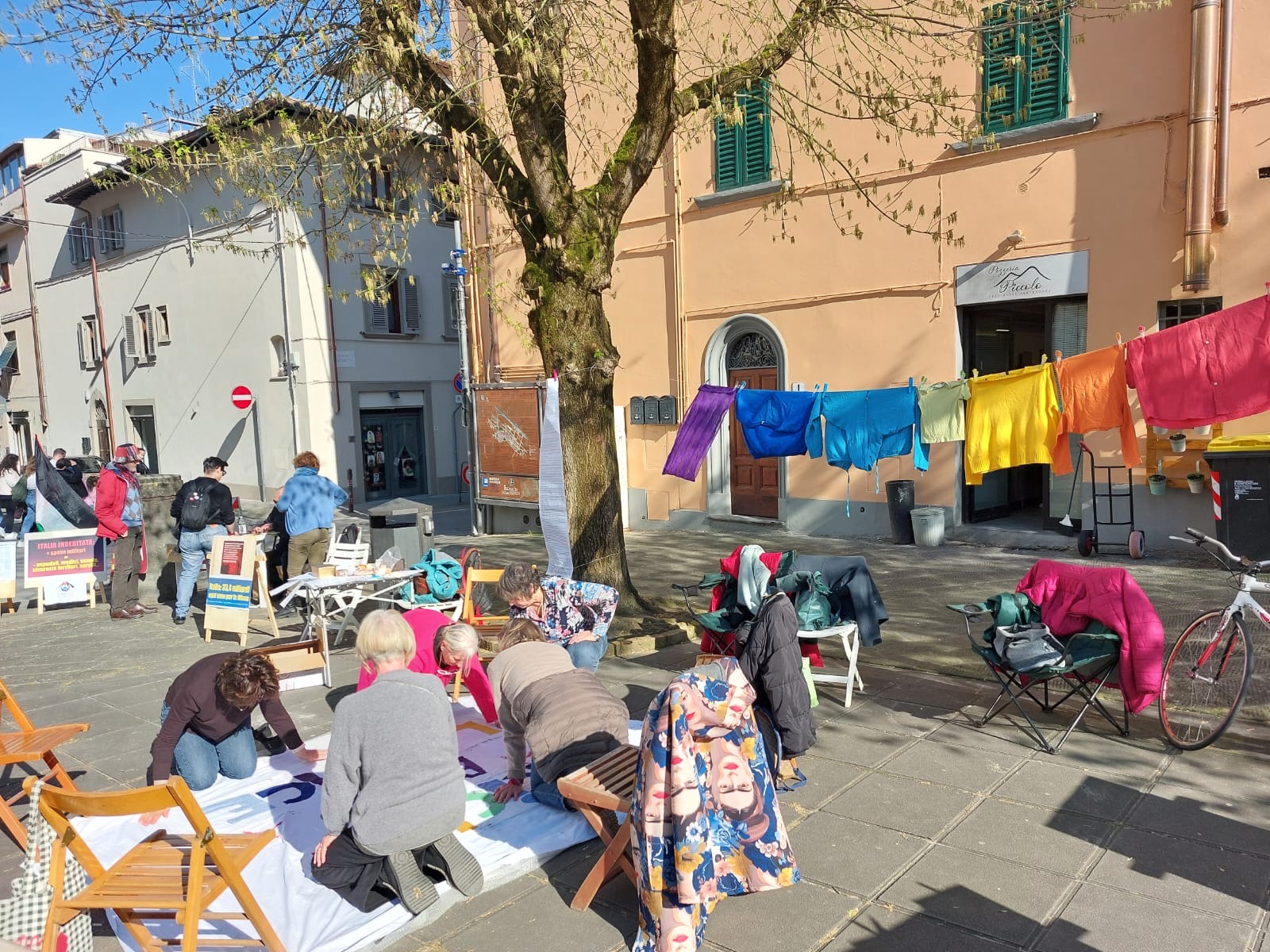 Dopo l’attesa delle settimane precedenti, la piazza si è trasformata in uno spazio condiviso di incontro e partecipazione, dove cittadine e cittadini hanno dato vita a un gesto tanto semplice quanto simbolico: tessere insieme. L’evento si è inserito nella mobilitazione nazionale che ha visto attivarsi contemporaneamente oltre 150 piazze in tutta Italia, dal nord al sud del Paese. A livello locale, l’iniziativa è stata promossa dal gruppo Donne Attive per la Pace di Incisa e dintorni.