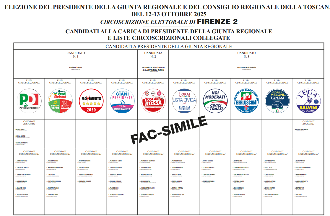 Il 12 e il 13 ottobre in Toscana i cittadini sono chiamati ad eleggere il Consiglio regionale ed il Presidente della Giunta regionale. Le elezioni si svolgono domenica 12 ottobre dalle ore 7:00 alle ore 23:00 e lunedì 13 ottobre dalle ore 7:00 alle ore 15:00. In caso di smarrimento della tessera elettorale è possibile rivolgersi al proprio Comune di residenza per chiederne un duplicato o un attestato sostitutivo: gli uffici elettorali sono aperti durante i due giorni di votazione.