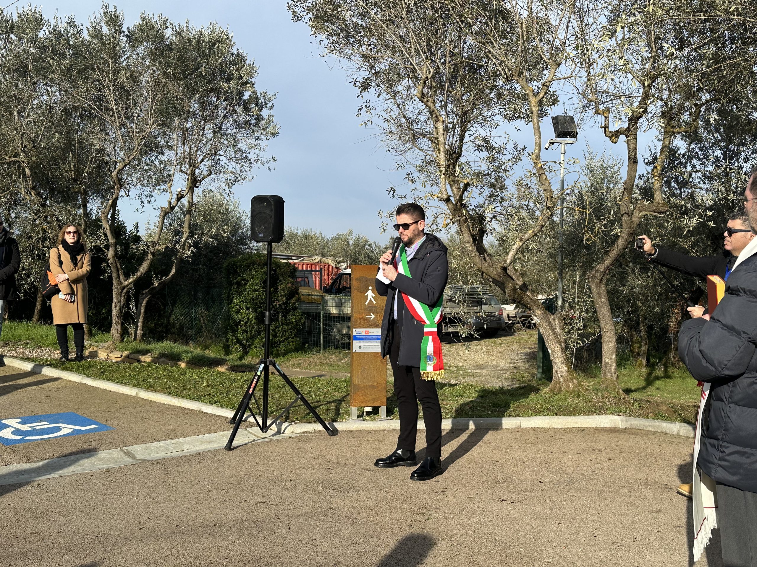 Sindaco Sergio Chienni: “Il cronoprogramma è stato pienamente rispettato e quindi ringrazio i nostri uffici, la direzione lavori e le ditte si sono adoperate per centrare questo risultato. Siamo soddisfatti perché è un parcheggio con 18 posti, fra cui 4 stalli disegnati per i camper, che serve sia all’abitato sia al cimitero nell’occasione in cui viene utilizzato ovviamente per le cerimonie funebri o comunque quando ricorre il giorno dei defunti. È un lavoro che è stato ottimamente realizzato, come si può vedere, fra l’altro è anche compatibile con il contesto perché nasce in un’oliveta, quindi ci sono stati una serie di accorgimenti sia per preservare il maggior numero di olivi che ovviamente arredano ma soprattutto rispettano l’elemento paesaggistico sia anche nei materiali che sono stati utilizzati per la realizzazione e per le finiture.
