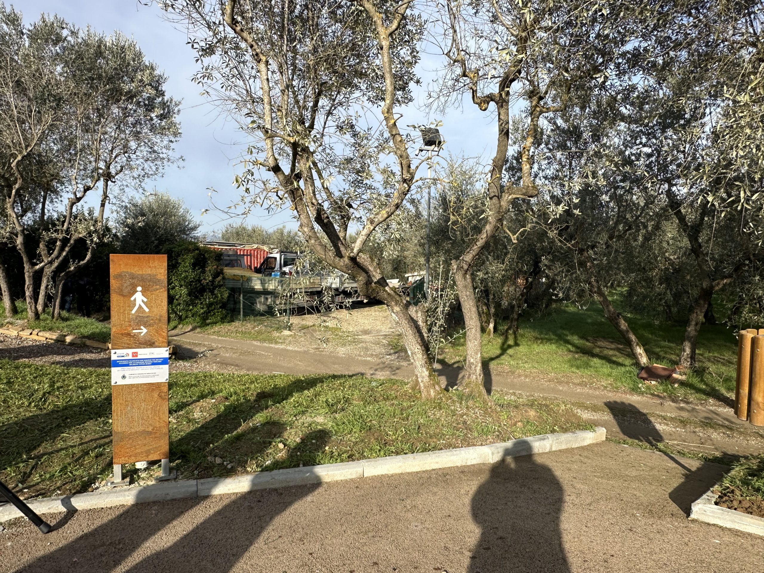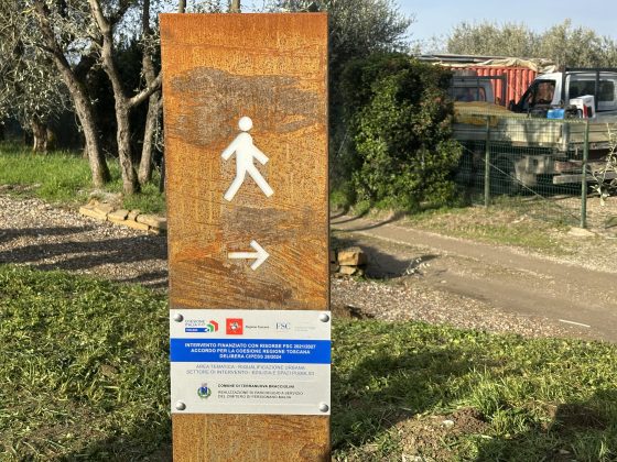 Giacomo Reggioli, amministrazione pubblica ufficio tecnico dei lavori pubblici: “Qui abbiamo previsto questa modesta area per il parcheggio che apporta alla trazione dei nuovi posti auto necessari soprattutto essendo un’area con termine a cimitero. È stato un progetto realizzato e finanziato dalla Regione Toscana in collaborazione con il comune nostro, il comune di Loro Ciuffenna, nell’ambito di una frazione condivisa. Il progetto, come vedete, aveva previsto un totale di 18 posti auto, oltre i 4 posti camper che presentano una dimensione maggiore. Particolare attenzione è stata attribuita alle soluzioni tecniche, in particolare come vedete il tappeto di rifinitura è un tappeto con una particolare finitura che si chiama Saka Transparent, cioè è un bitume additivato con delle resine che permette di ottenere, e di un aggregato di colorazione in tono, una finitura che si inserisce perfettamente nel contesto ambientale. Particolare attenzione anche all’illuminazione, sono stati scelti dei corpi illuminanti a bassa naturalmente tecnologia led però anche con un’emissione di lux tali da rispettare il contesto anche paesaggistico. E anche la segnaletica insomma è stata progettata con questi elementi in acciaio corten che anch’essi si inseriscono nel contesto. Quindi è stata una progettazione attenzionata, in collaborazione con l’amministrazione e anche con lo studio tecnico di Mesina e l’architetto Donati.”