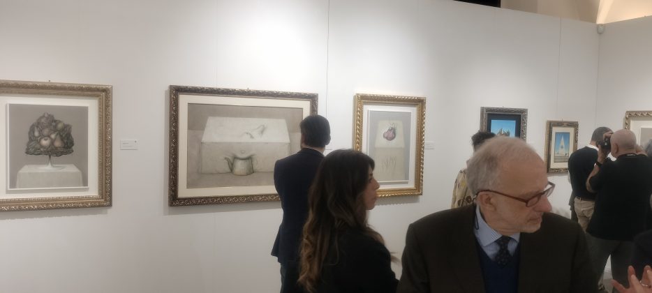 “Con la stimatissima collega Silvia Bonomini, che è anche la curatrice del catalogo generale di Armodio, non che della mostra che si è tenuta lo scorso settembre alla Camera dei Deputati, abbiamo individuato in un nucleo di opere recenti, inedite, una nuova frontiera, una sorta di New Deal di Armodio – spiga il professor Faccenda – Da una dimensione metafisica strizza magari l’occhio a un’altra più surrealista, più vicina magari a certe istanze del fratello di De Chirico, Alberto Savigno. Al piano terra ci sono opere mai viste, devo dire più di una in particolare è importante vedere tutta la mostra, perché Armodio è come uno scrittore alla Borges: se tu leggi tre pagine è difficile che tu possa capire il libro e quindi credo che la visione della parte sottostante con tutto il corpus di opere più recenti, diano un suggerimento a ciascuno, perché poi un’opera d’arte è sempre per metà di chi la dipinge e per metà di chi la guarda. È vero che Armodio parla una lingua difficile, una lingua che può essere latino per chi conosce a malapena l’italiano, ma io sono convinto che quando i pittori sono grandi pittori, e in questa terra ce ne sono stati tanti, anche il più difficile riesce a stabilire un dialogo profigo e fecondo nell’aspettatore.”