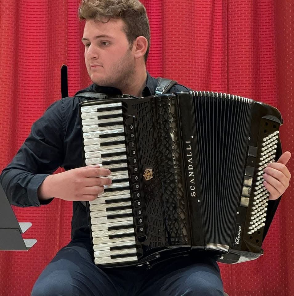 Thomas è riuscito inoltre a guadagnarsi molte esperienze formative, come un Erasmus+ ECVET, che gli ha permesso di conoscere la cultura della fisarmonica oltre le Alpi, numerose Masterclass e il terzo posto in un concorso fisarmonicistico internazionale.