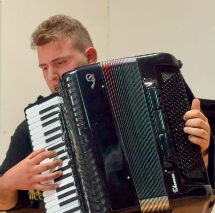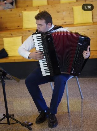 “Il mio cammino musicale è iniziato grazie alla mia famiglia – racconta – in particolare a mia mamma Romina, che all’età di due anni mi ha messo subito al pianoforte. Poi all’età di cinque anni, frequentando il Gruppo Folkloristico Arcobaleno di Pergine Valdarno, al quale tutt’oggi sono grato e continuo a partecipare alle loro iniziative come fisarmonicista, mi sono appassionato alla fisarmonica. Ho iniziato a studiare privatamente con il maestro Simone Ermini per poi continuare all’età di dieci anni in conservatorio, prima sotto la guida del maestro Ivano Battiston e ad oggi con il maestro Riccardo Centazzo, sempre al Conservatorio Cherubini di Firenze.”