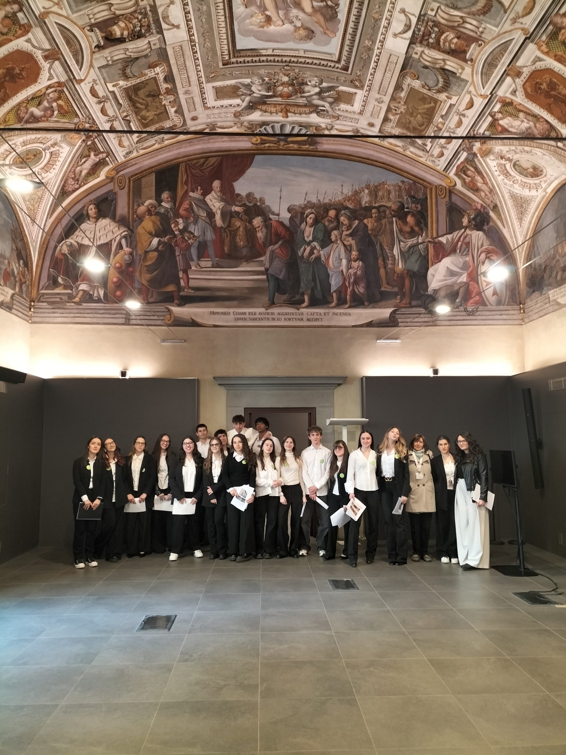 In occasione delle Giornate FAI, tenutesi lo scorso 21 marzo, gli alunni della classe III A del Liceo Classico dell’I.I.S. Benedetto Varchi hanno ricoperto con entusiasmo il ruolo di “Apprendisti Ciceroni” presso il prestigioso Palazzo Buontalenti di Firenze. Il sito è un luogo d’eccezione, sin dalle sue origini legato alla famiglia Medici; qui ebbe sede il Giardino di San Marco, dove Lorenzo il Magnifico aveva allestito un’Accademia d’arte in cui i giovani talenti potevano studiare le opere antiche di proprietà medicea. L’attuale edificio fu progettato da Bernardo Buontalenti per volontà di Francesco I, il principe alchimista, e destinato ad ospitare le Fonderie Granducali; fu poi con il cardinal Carlo de’ Medici, all’inizio del ‘600, che le sue sale si arricchirono di uno dei più ricchi cicli di affreschi celebranti le gesta dei granduchi di Toscana.