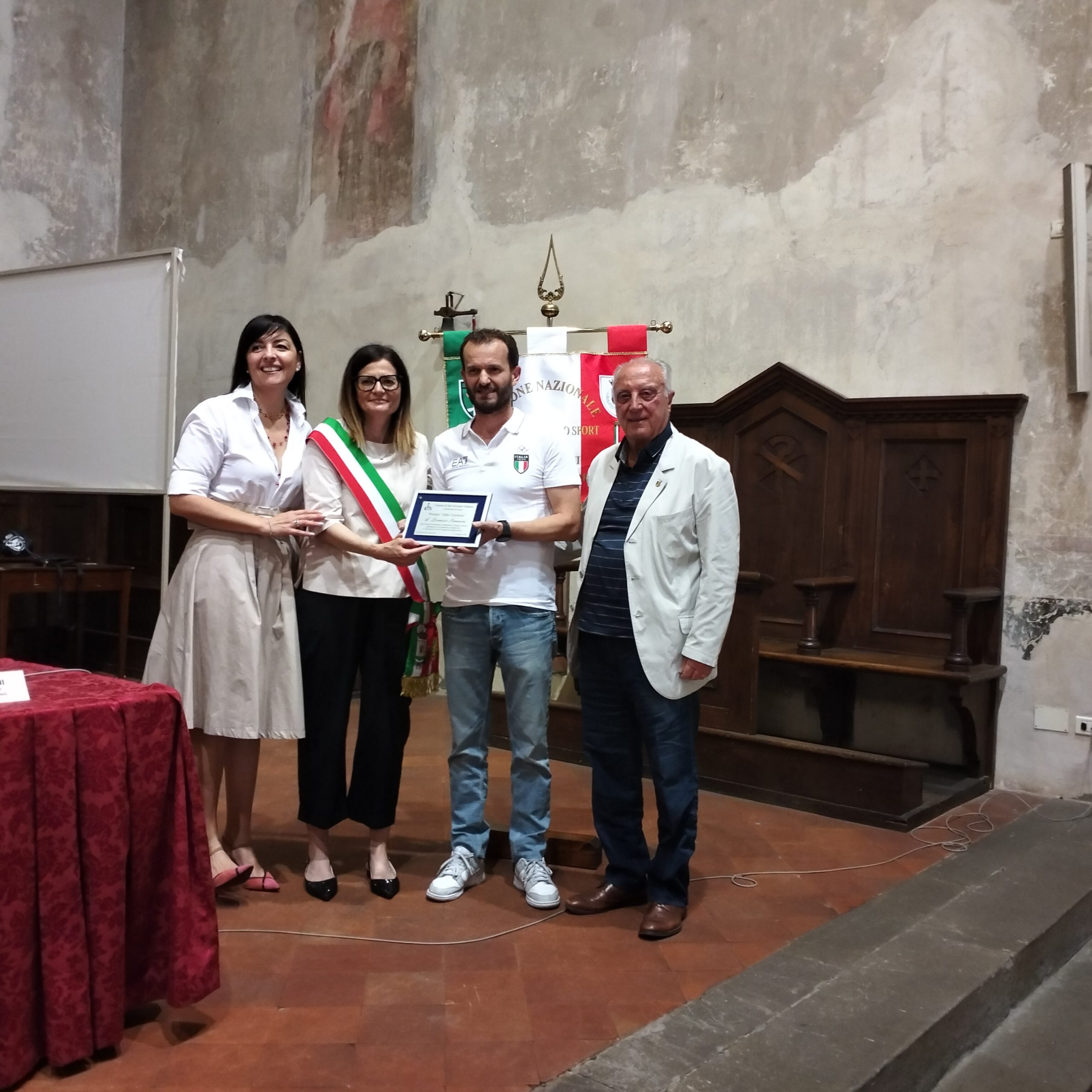 Il premio al merito sportivo è andato a Matteo Monnetti per gli eccellenti risultati nella pratica e nell’insegnamento del karate, quindi alla carriera per Lorenzo Nannoni commissario tecnico della nazionale maschile di tennistavolo e Fabrizio Carnasciali per il suo impegno nel ciclismo come giudice di gara.