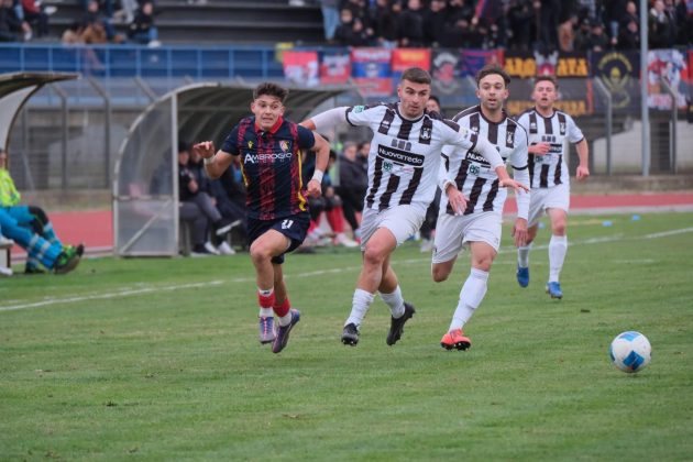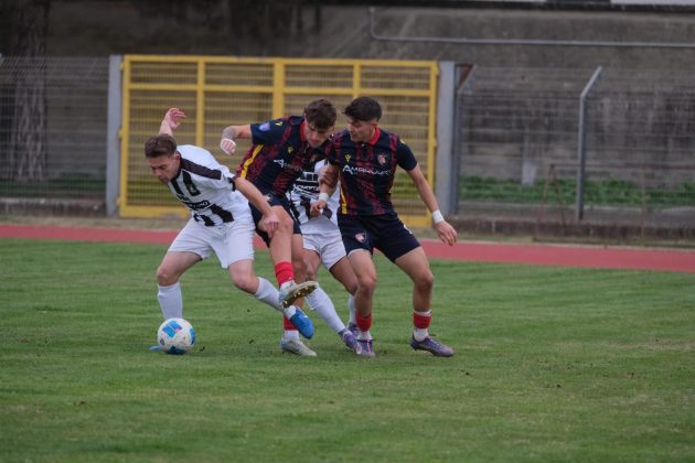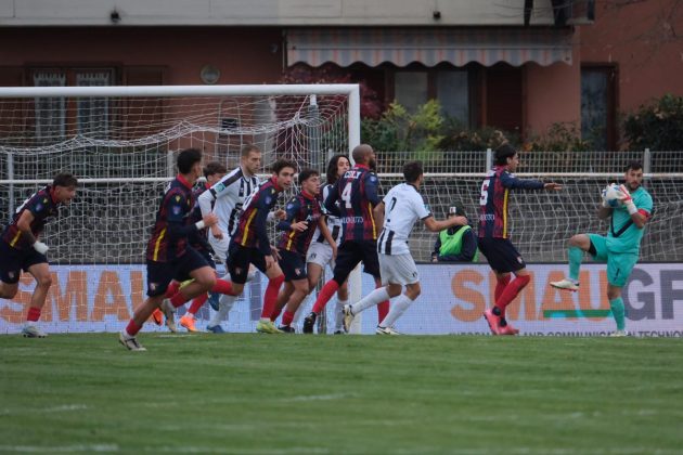 Al 28′ alla prima occasione il Sansepolcro la pareggia: transizione dei bianconeri da destra verso sinistra che porta Alagia a puntare Rosini ed a calciare a giro sul secondo palo trovando una traiettoria imparabile per Giusti.